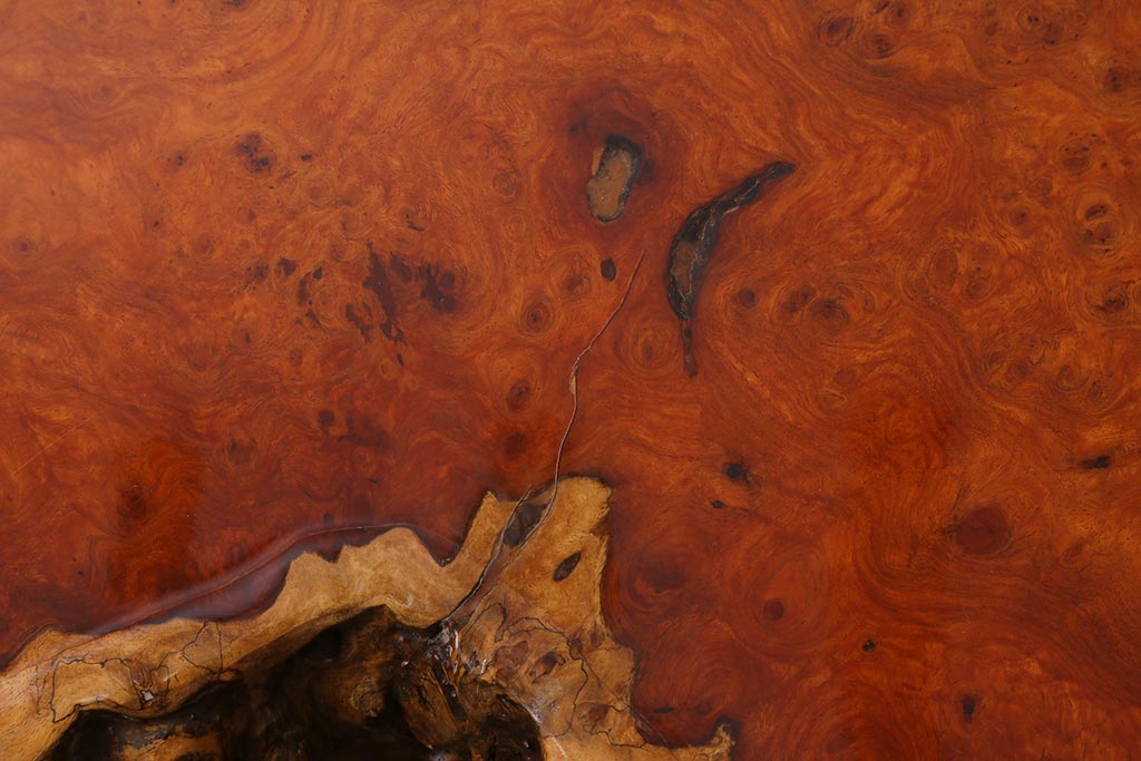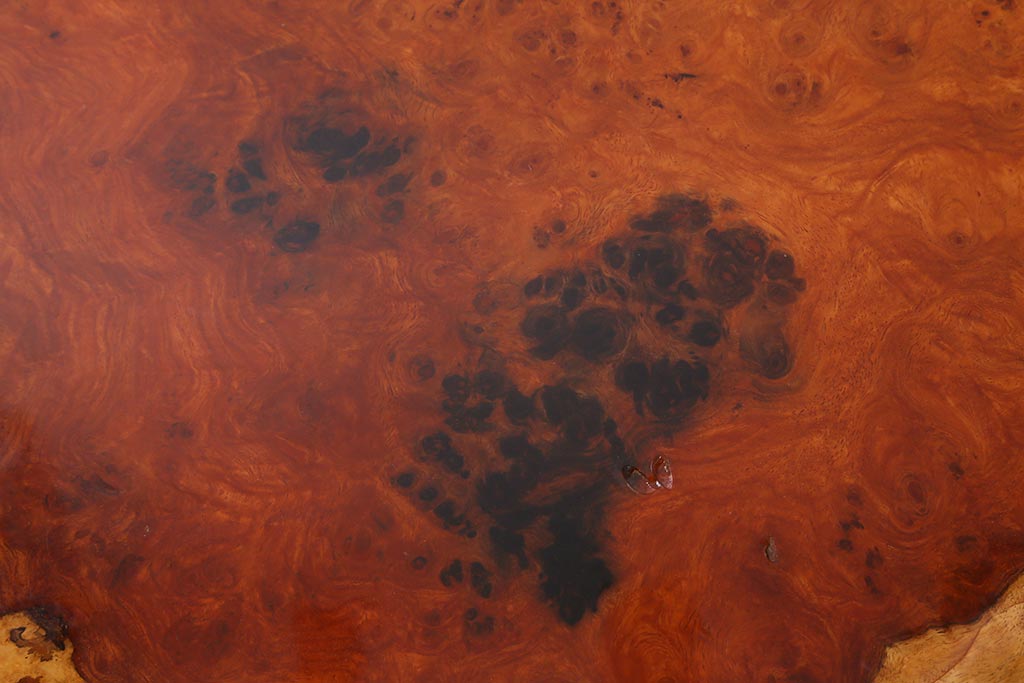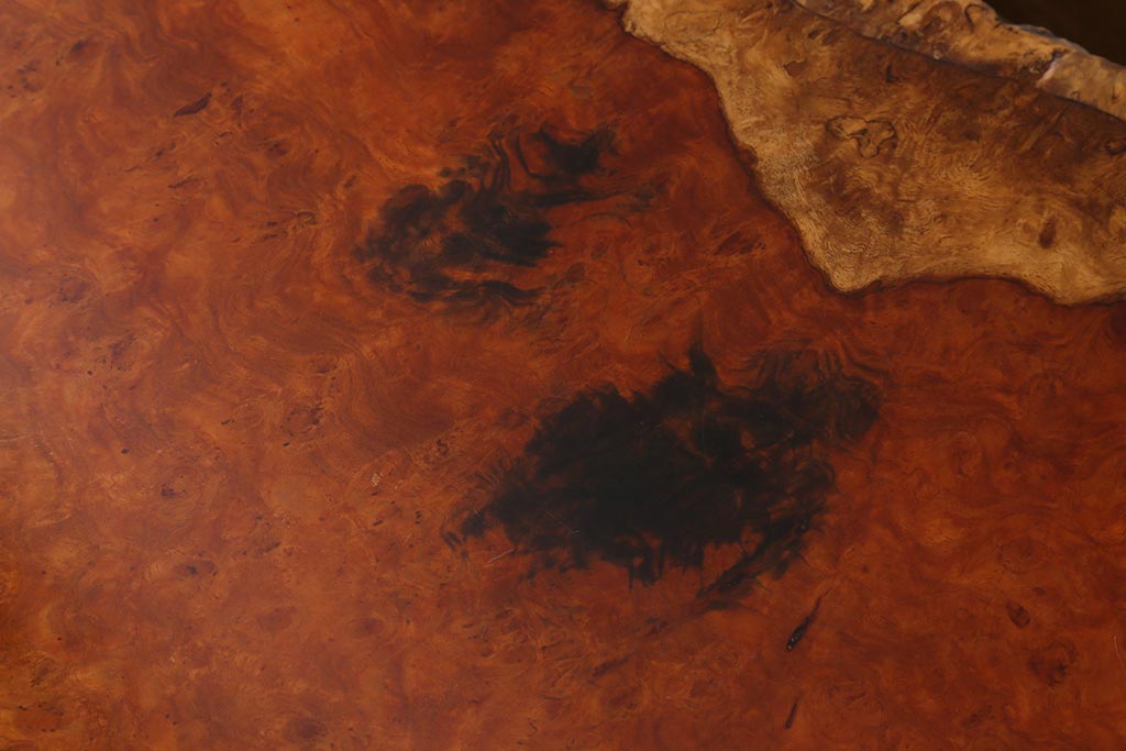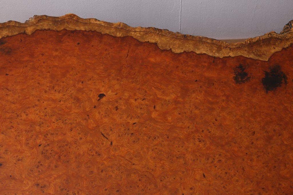 中古 特大 極厚天板 カリン材(花梨材) 鳥眼杢 自然の造形美が存在感を放つ座卓(定価約230万円)(ローテーブル)(R-039744)