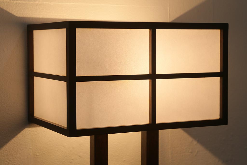 中古 民芸家具 和モダンスタイルに活躍する置行灯風スタンドライト(フロアライト、スタンド照明)(R-039736)