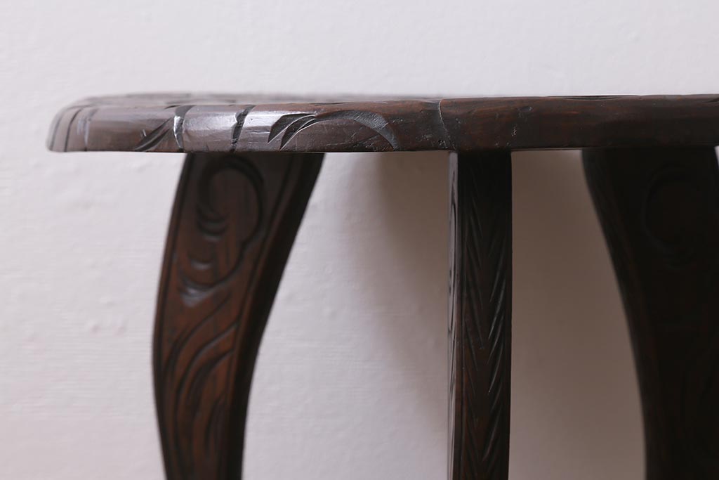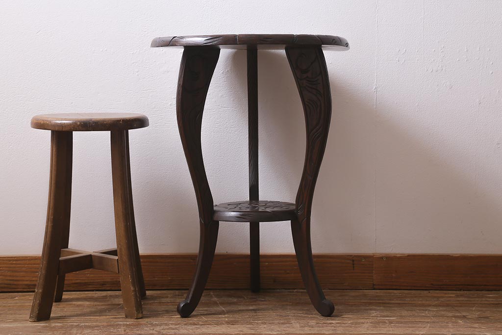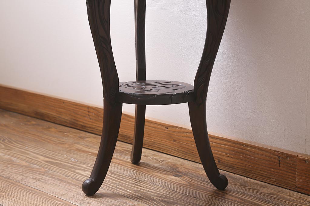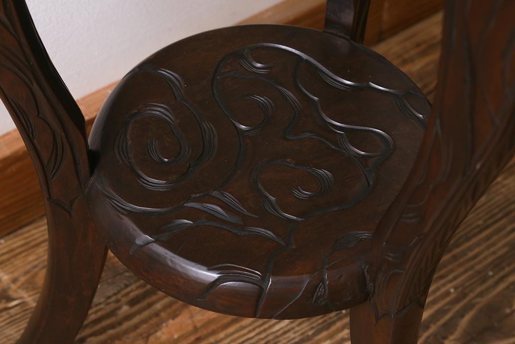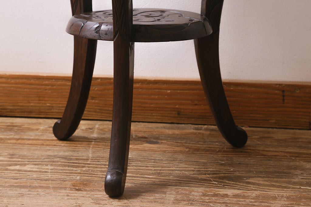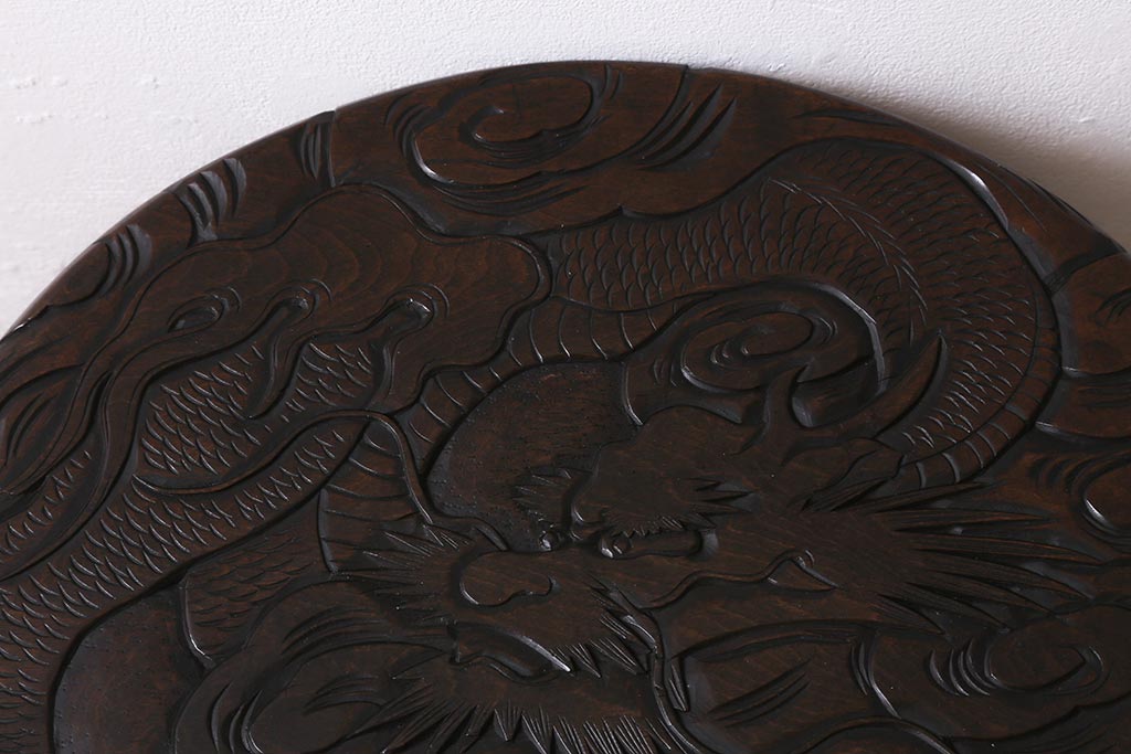 テーブル> 丸テーブル > 中古 伝統工芸 日光彫り 龍雲図 迫力ある彫刻のサイドテーブル(花台、飾り台)(R-039721)
