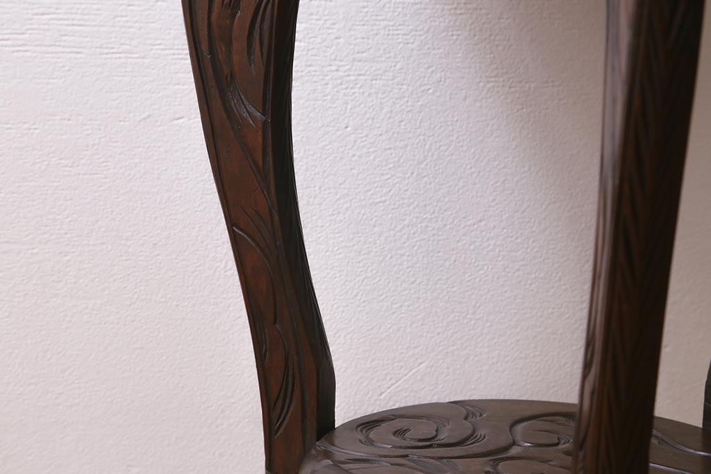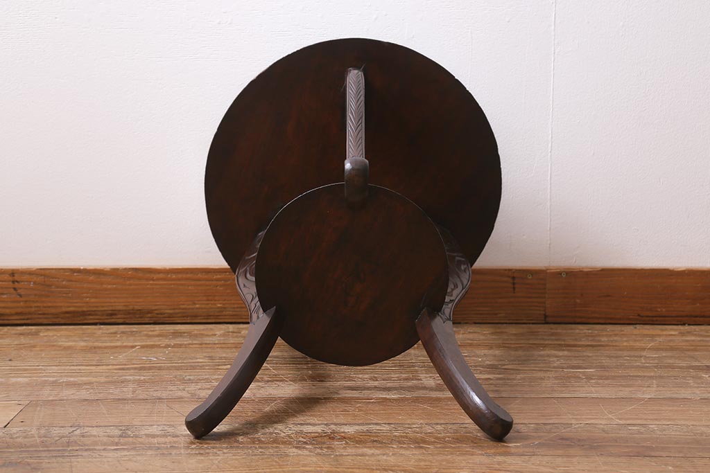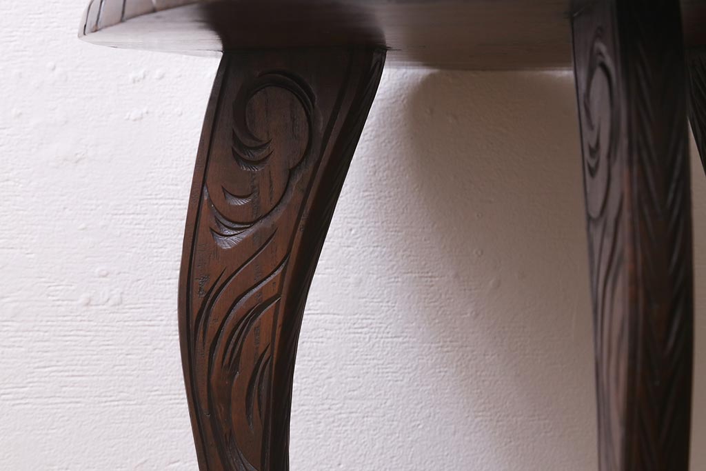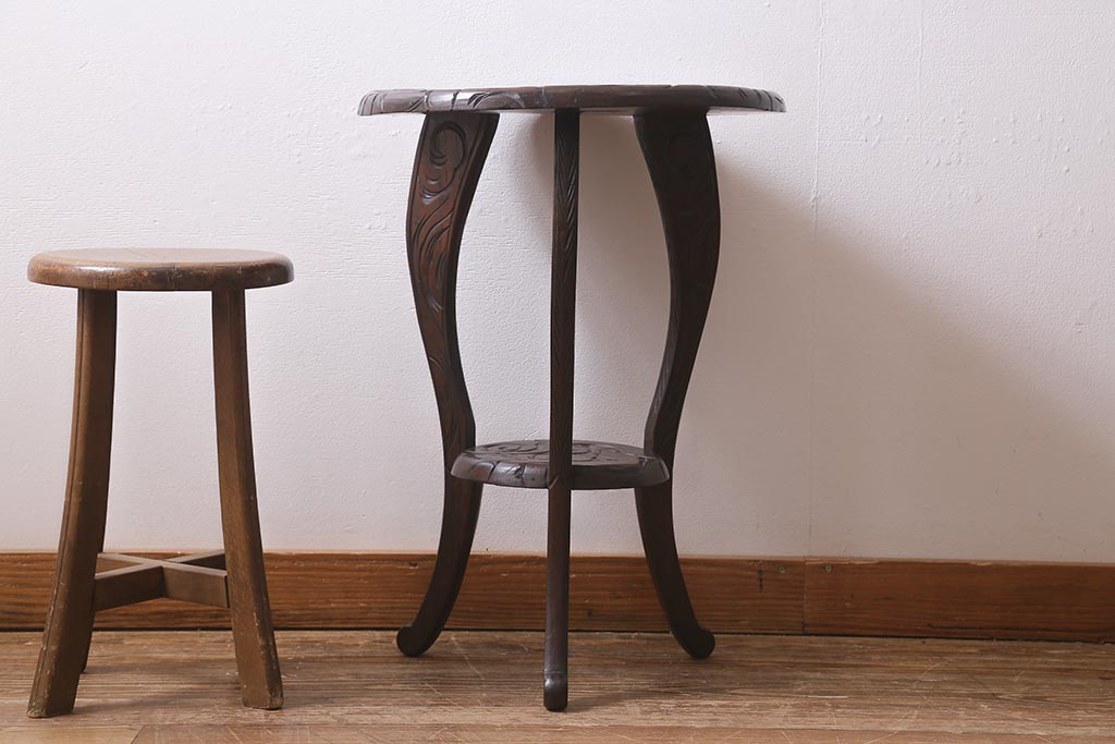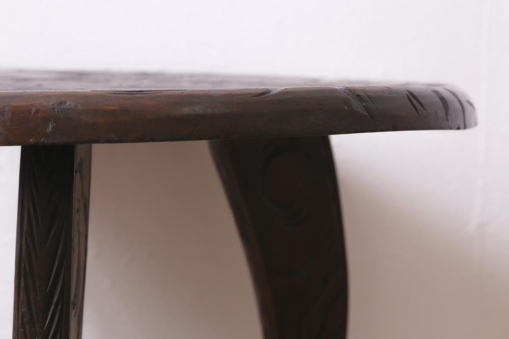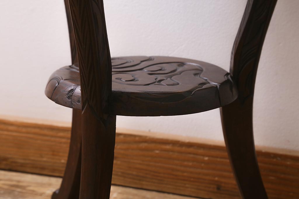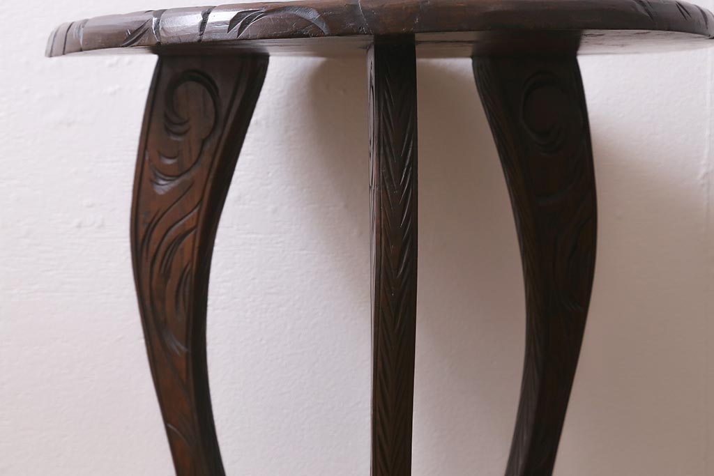 テーブル> 丸テーブル > 中古 伝統工芸 日光彫り 龍雲図 迫力ある彫刻のサイドテーブル(花台、飾り台)(R-039721)