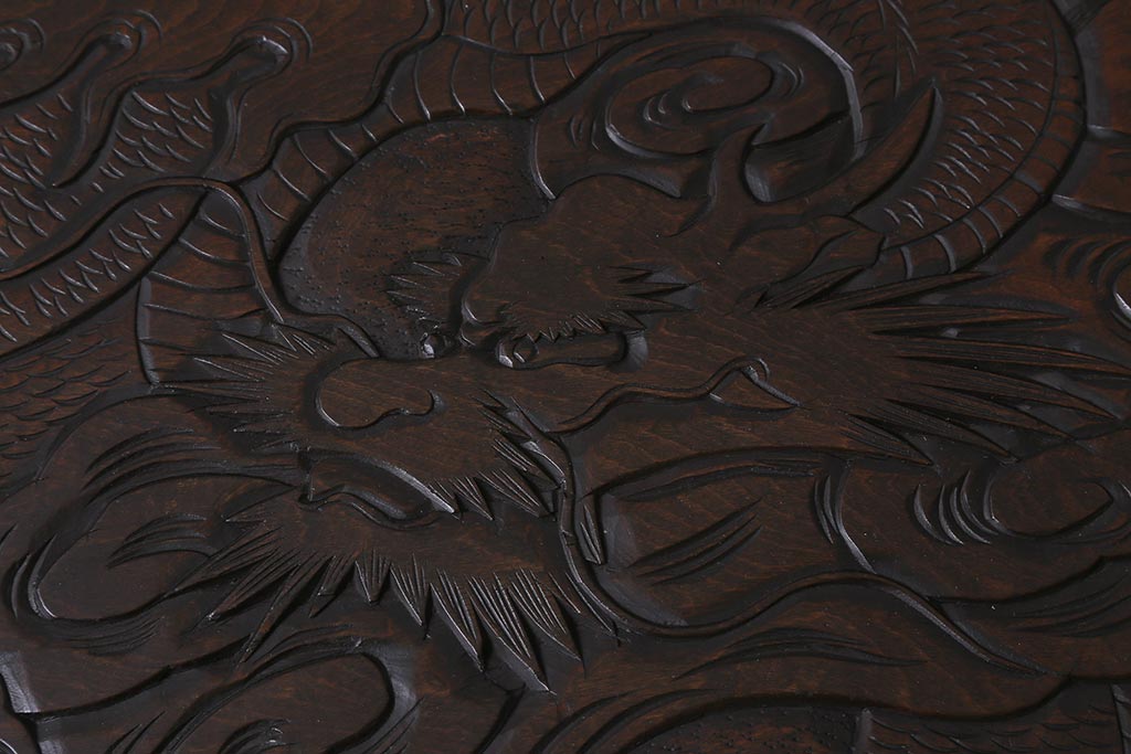 花台・飾り台 > 中古 伝統工芸 日光彫り 龍雲図 迫力ある彫刻のサイドテーブル(花台、飾り台)(R-039721)