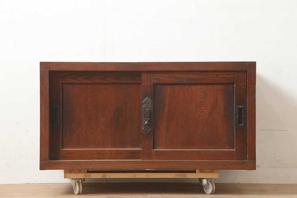 アンティーク家具 明治大正期 前面欅(ケヤキ)材 重厚感を醸し出す戸棚(収納棚、ローボード)(R-039764)です。