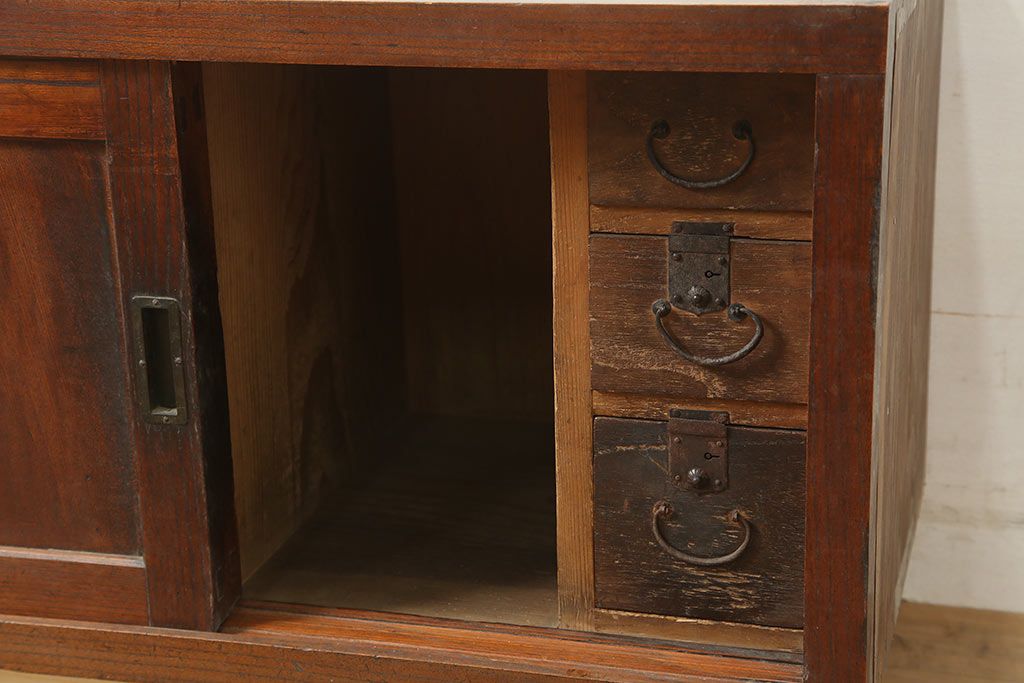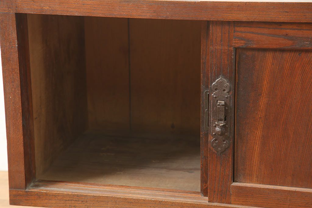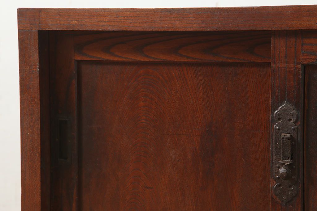 アンティーク家具 明治大正期 前面欅(ケヤキ)材 重厚感を醸し出す戸棚(収納棚、ローボード)(R-039764)