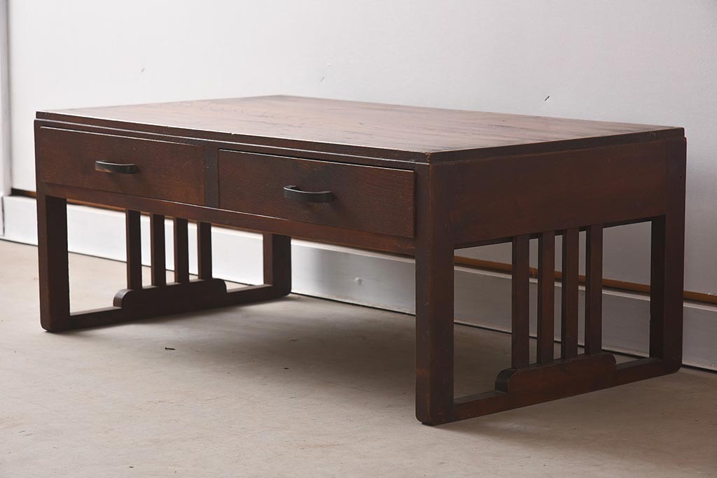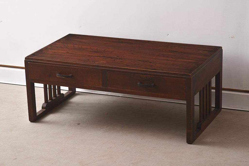 デスク> 文机・座机 > アンティーク家具 大正昭和初期 脚のデザインが目を惹くレトロな文机(座机、ローテーブル)(R-037235)