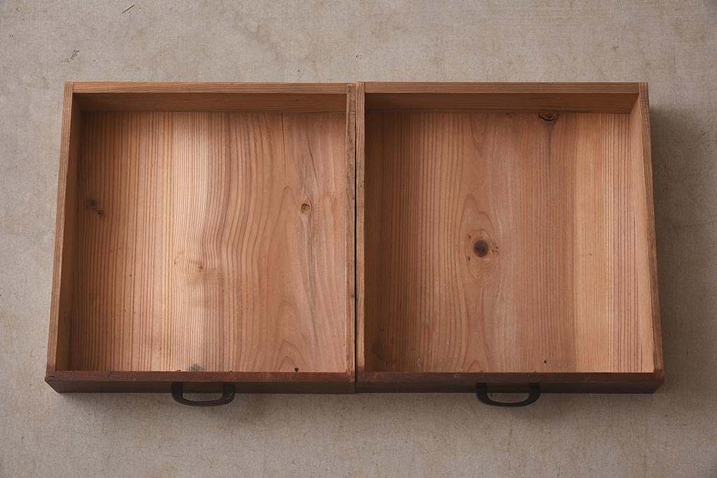 ・引き出し・引き戸・扉等の可動部分は調整してありますが、無垢材の特性として、湿度や気温などの変化によりきつくなったり緩くなったりする場合がございますので、ご理解の上お願いします。