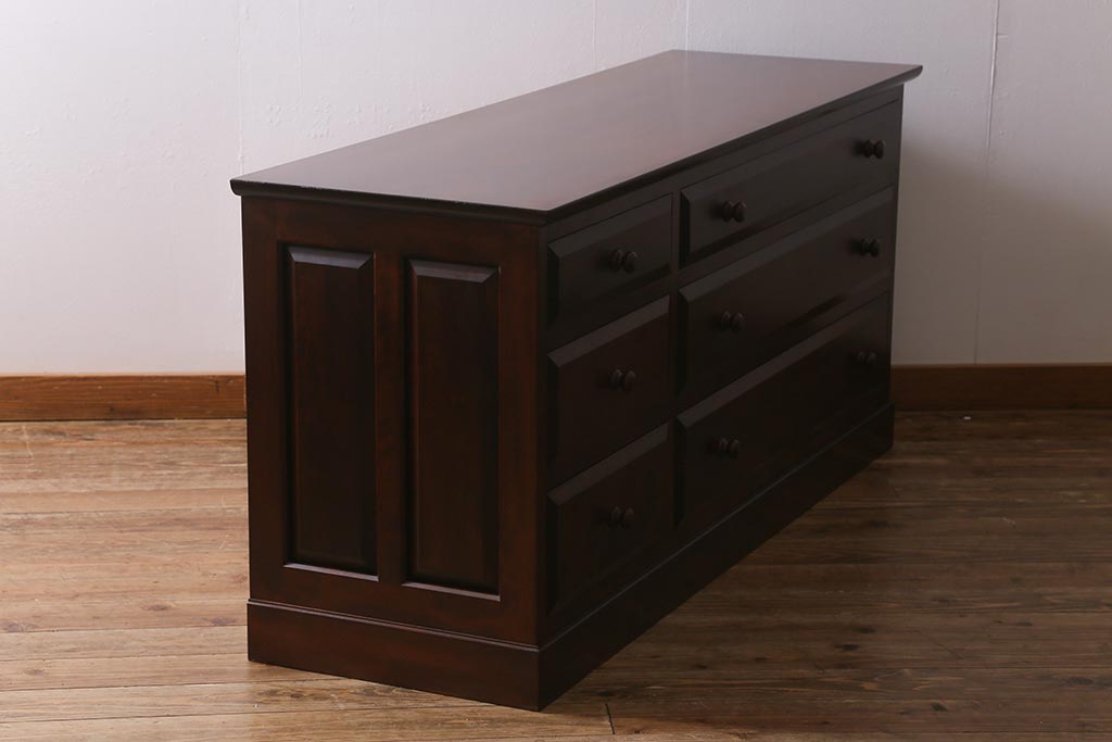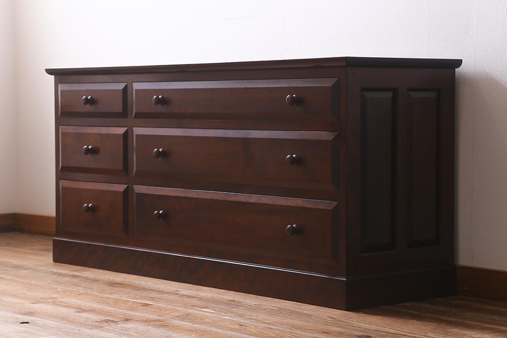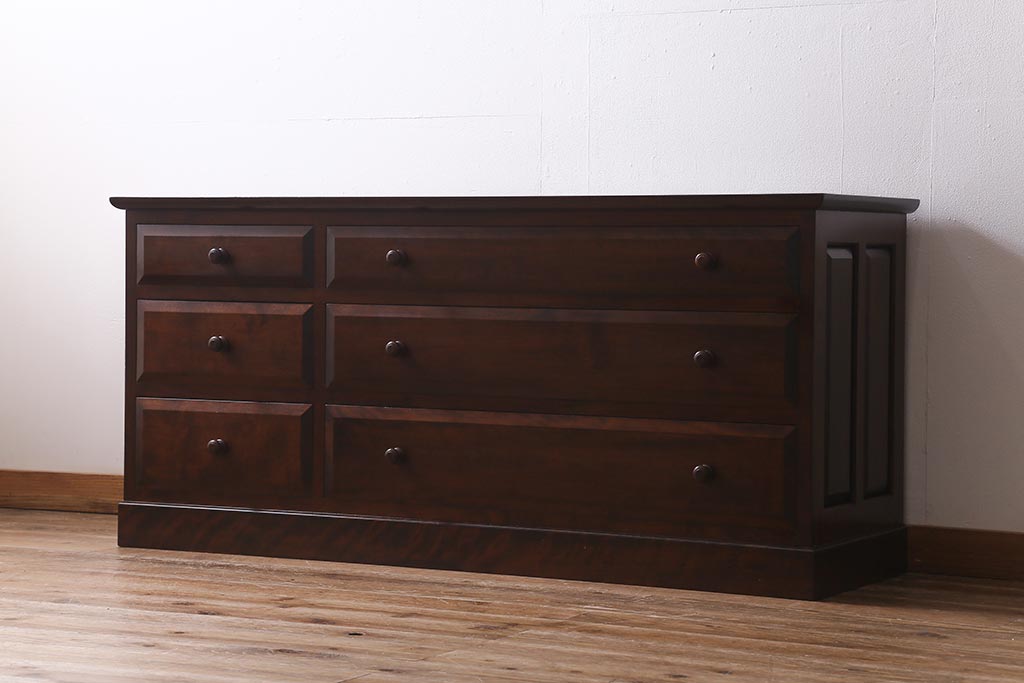 中古 松本民芸家具 E-33型 落ち着きのある色味が素敵なローチェスト(ローボード、引き出し、テレビボード)(R-039815)です。