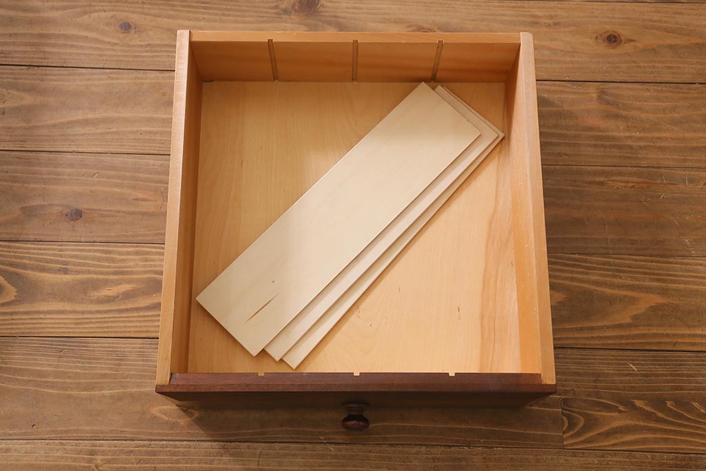 ■引き出しの内寸(小・仕切り付き) 深さ110mm/幅 各90mm/奥行385mm