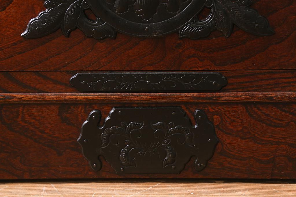 隅金具などにも細かな意匠が施されており、