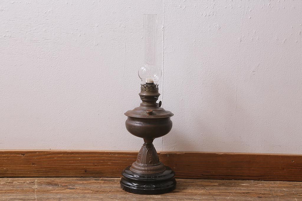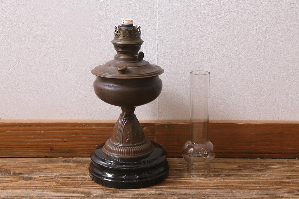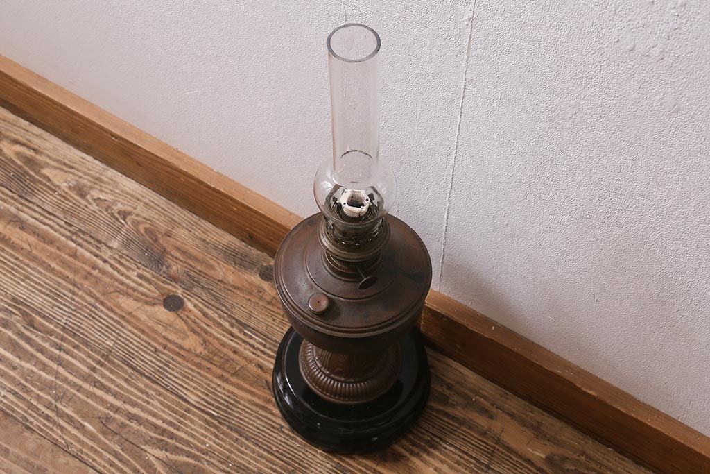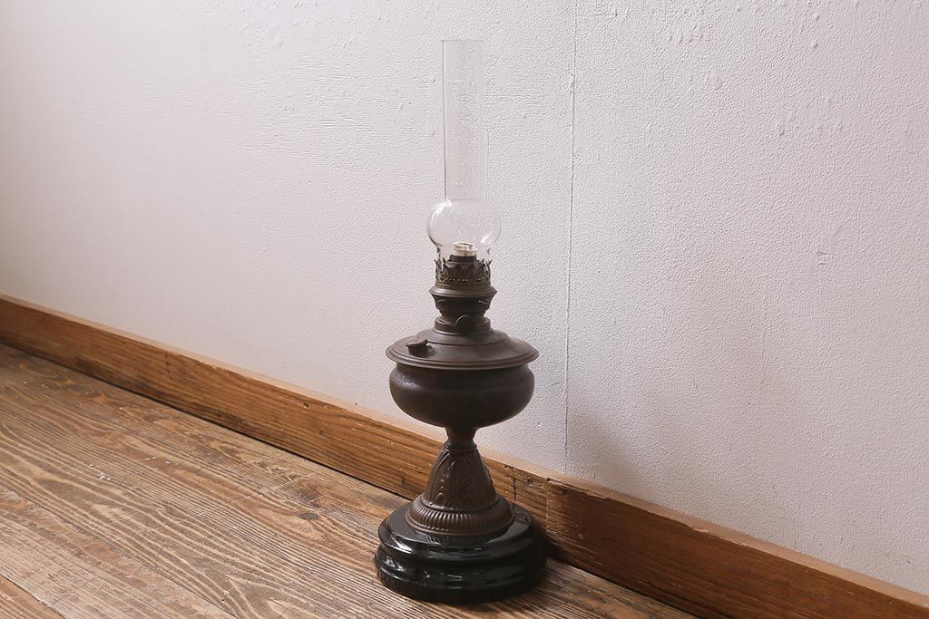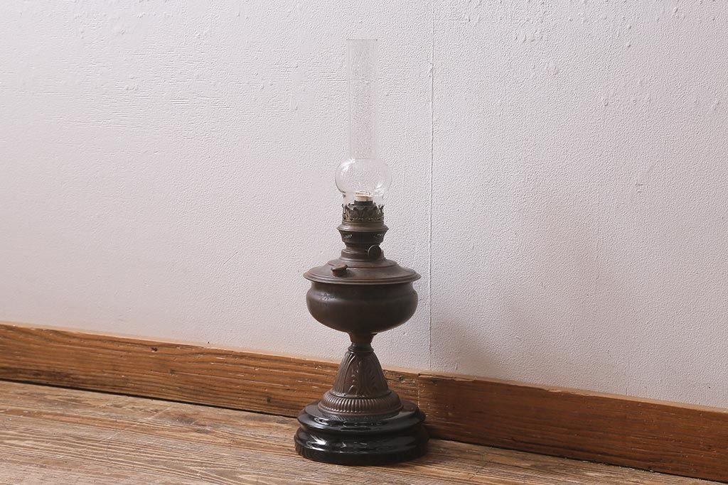 イギリスビンテージ ヴィンテージ雑貨 陶器製の土台が目を引くオイルランプ(灯油ランプ、置き型ランプ)(R-039799)です。