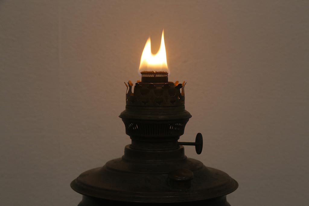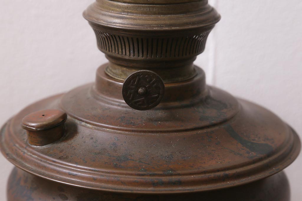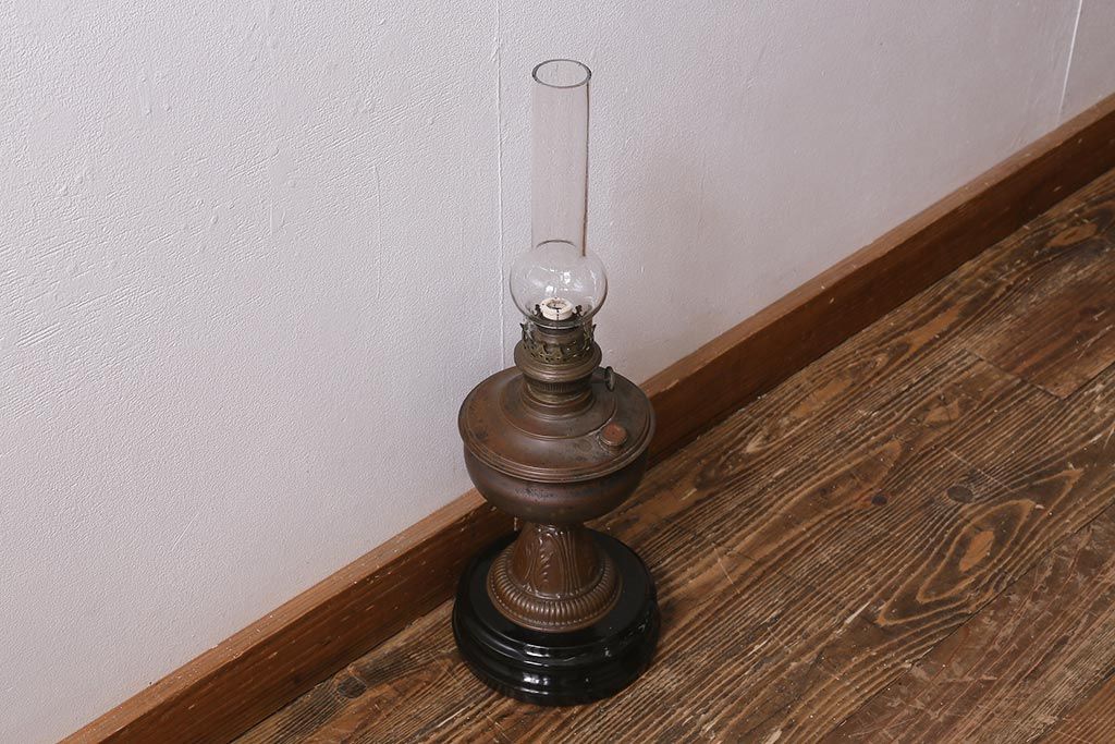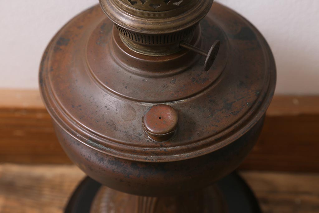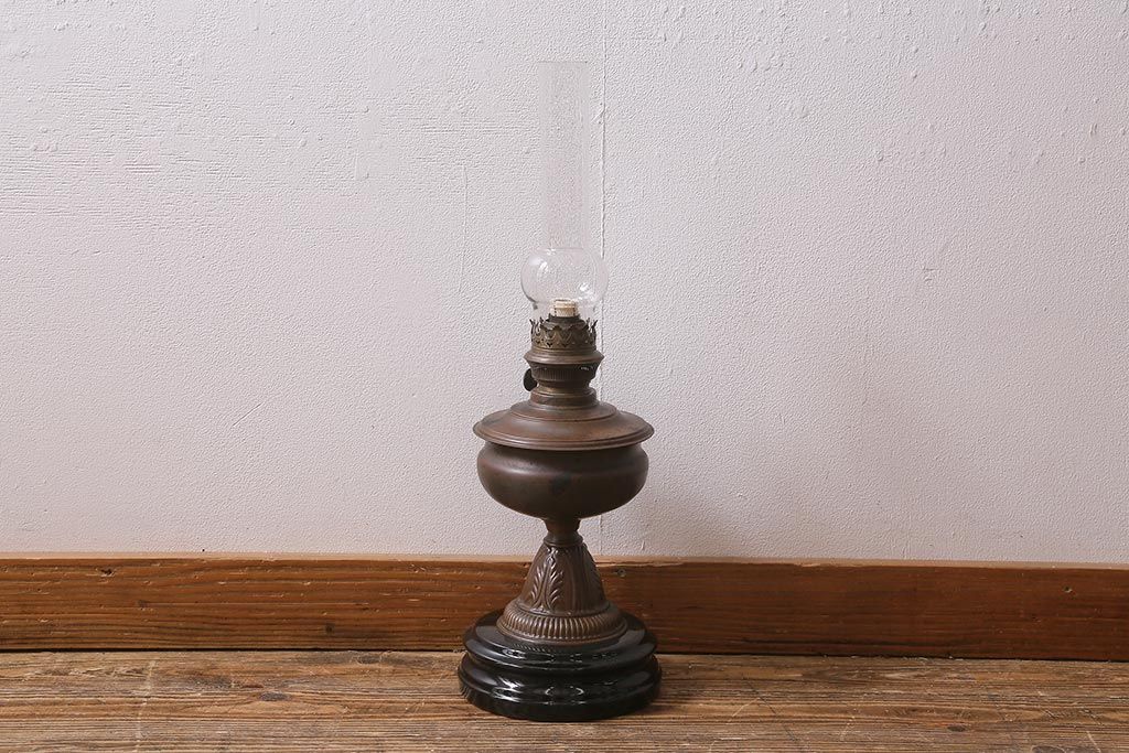 イギリスビンテージ ヴィンテージ雑貨 陶器製の土台が目を引くオイルランプ(灯油ランプ、置き型ランプ)(R-039799)です。