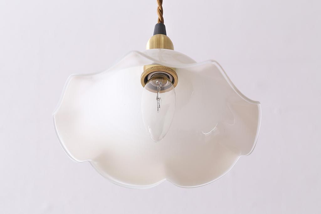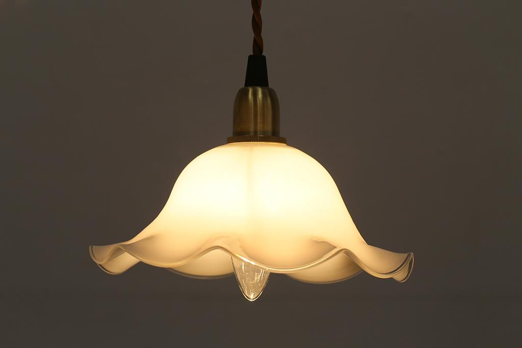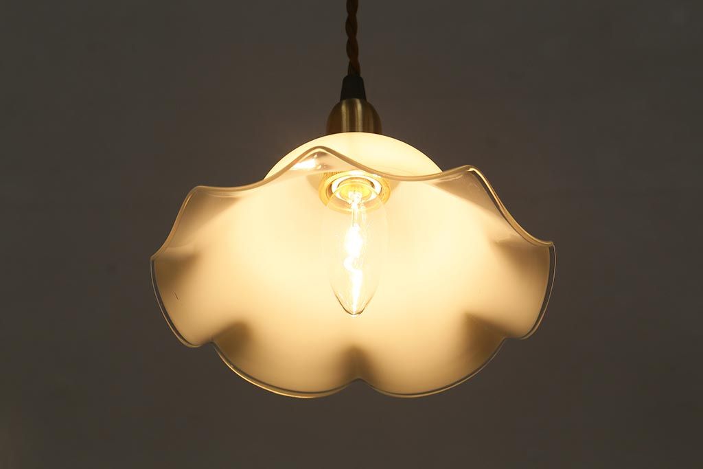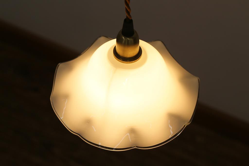 イギリスヴィンテージ照明 上品なフリルシェードのペンダントライト(ランプシェード、天井照明、吊り下げ照明、ビンテージ)(R-039905)です。