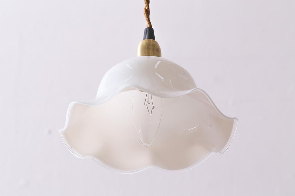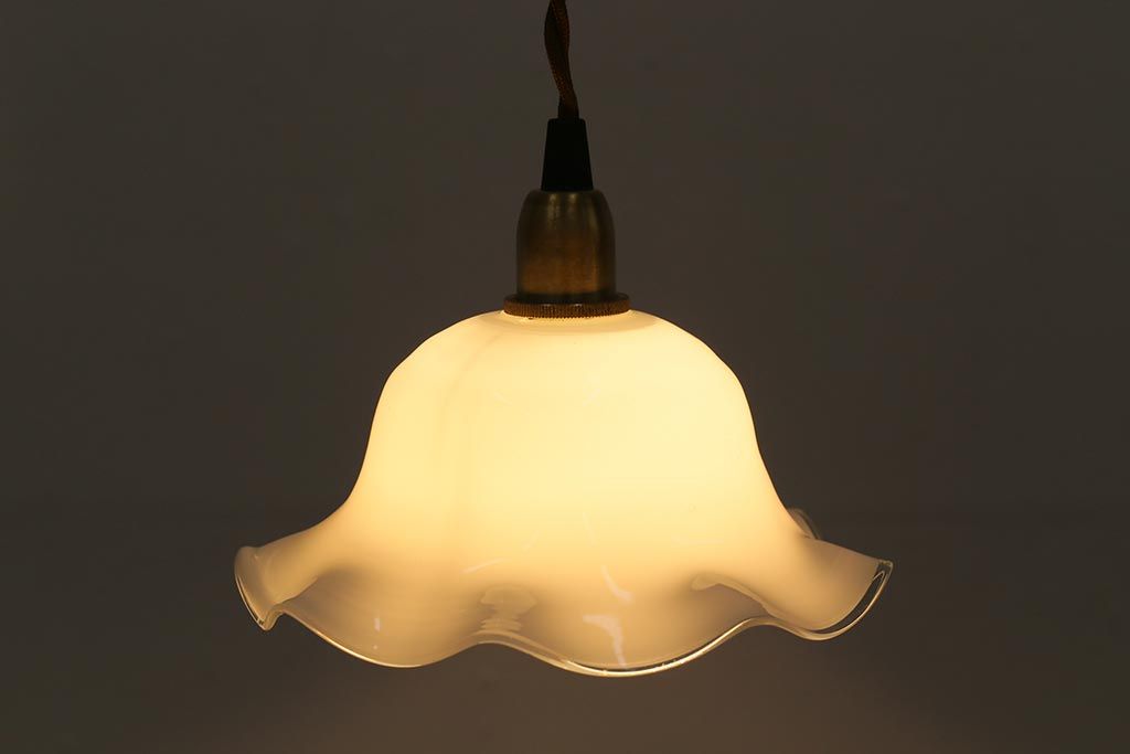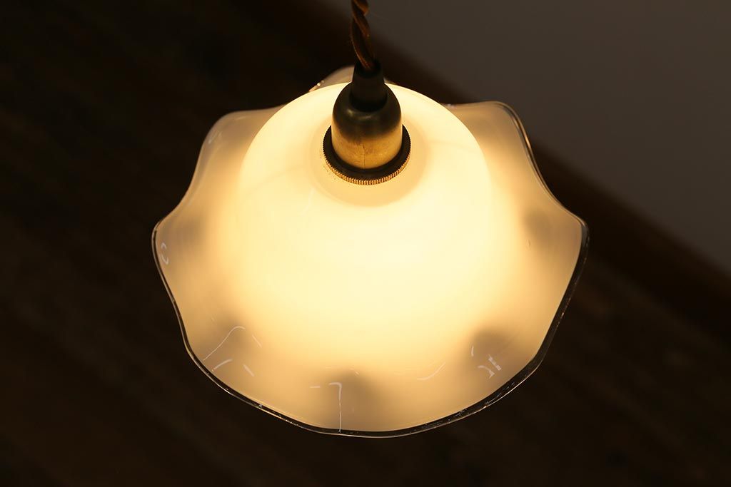 イギリスヴィンテージ照明 上品なフリルシェードのペンダントライト(ランプシェード、天井照明、吊り下げ照明、ビンテージ)(R-039906)