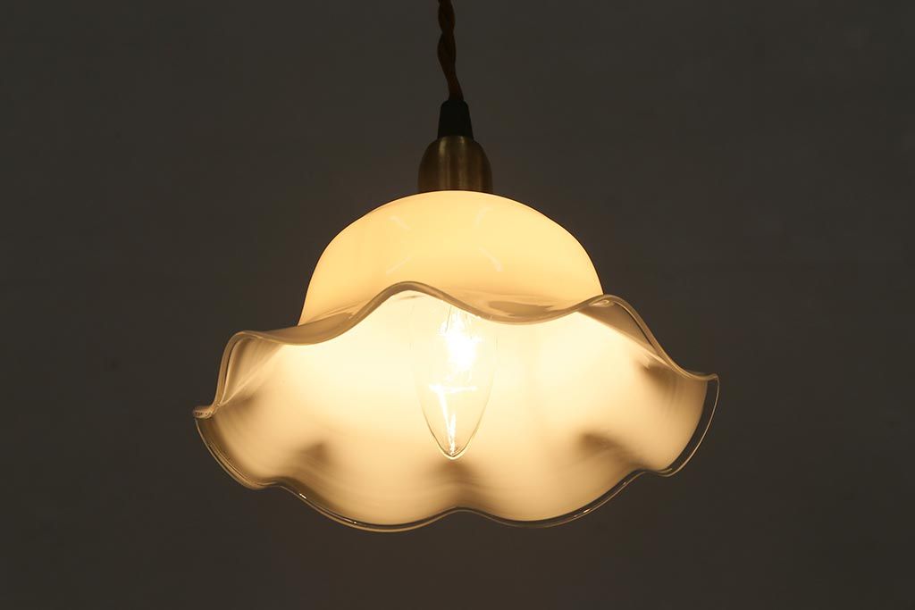イギリスヴィンテージ照明 上品なフリルシェードのペンダントライト(ランプシェード、天井照明、吊り下げ照明、ビンテージ)(R-039906)です。