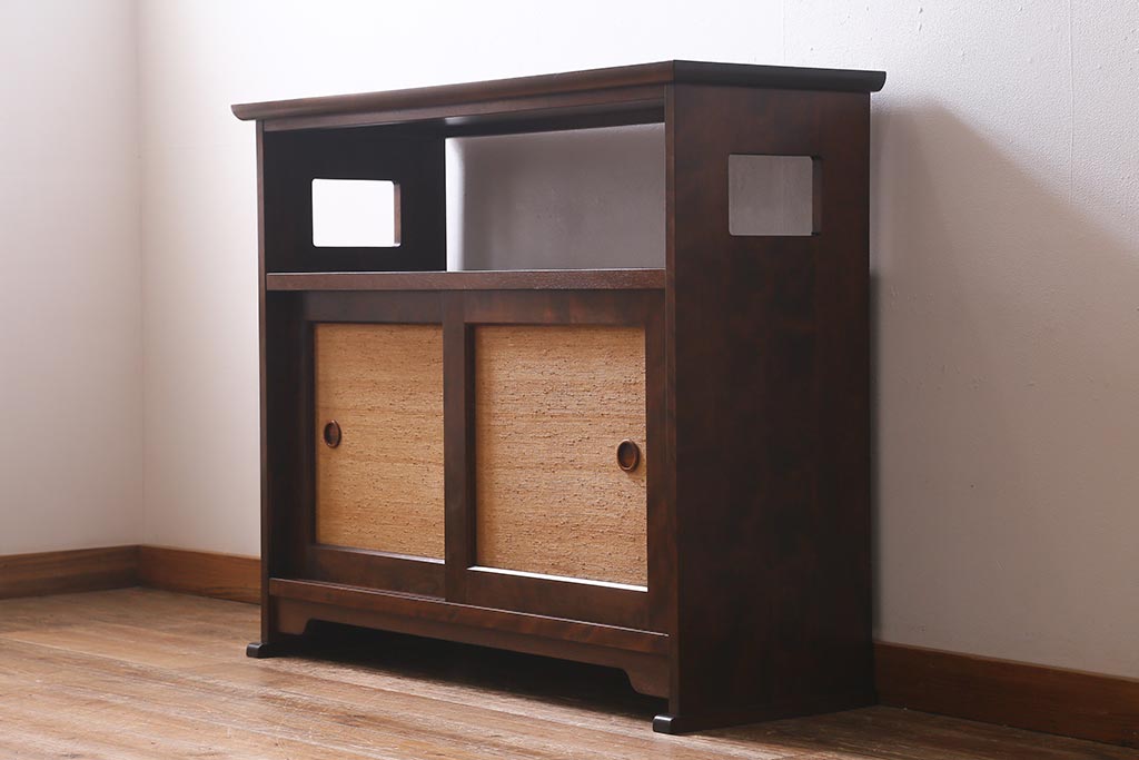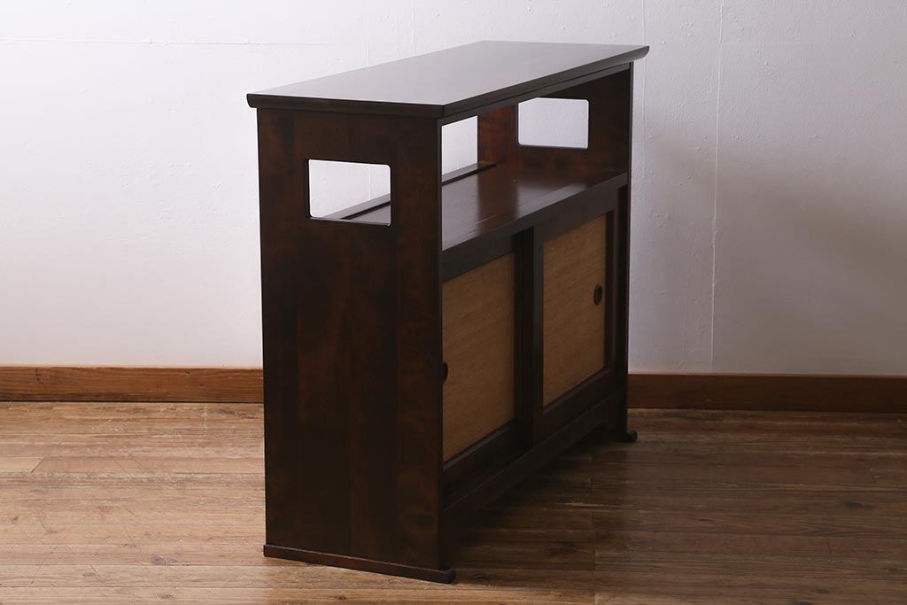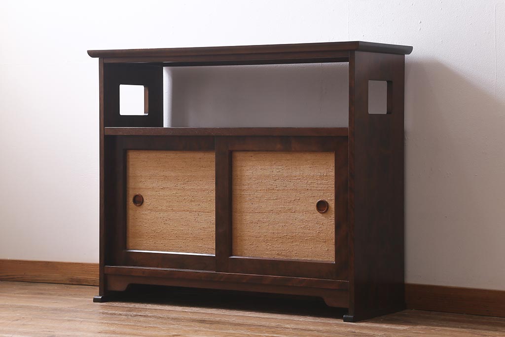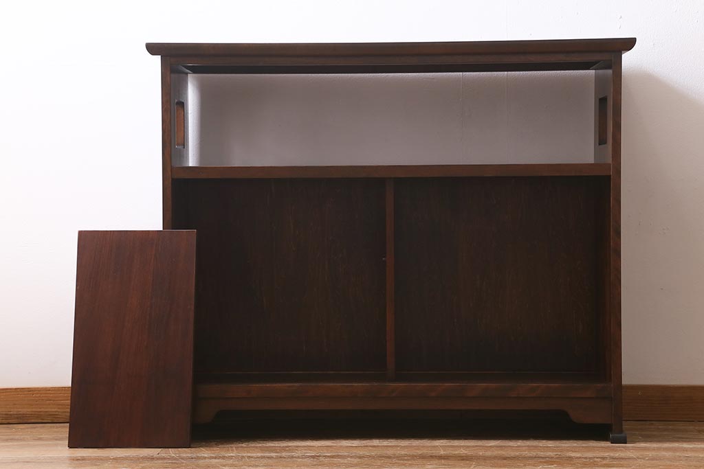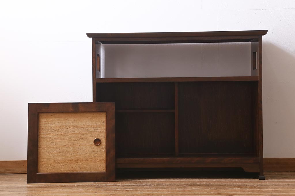 中古 九州民芸家具 すっきりとしたデザインで落ち着きのある飾り棚(収納棚、茶棚)(R-039934)