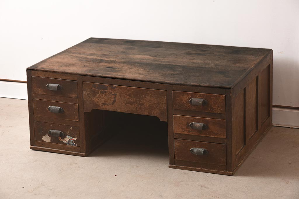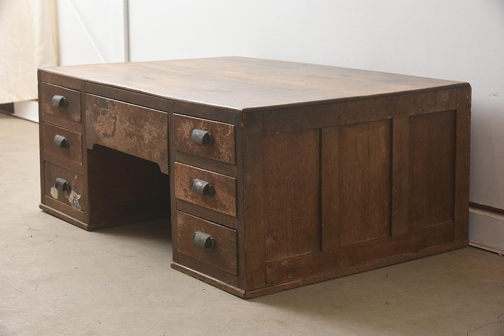 デスク> 文机・座机 > アンティーク家具 昭和初期 ナラ材 使い込まれた木の風合いが魅力の文机(両袖机、座机、ローテーブル)(R-039937)