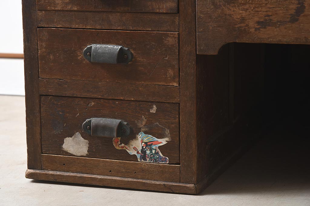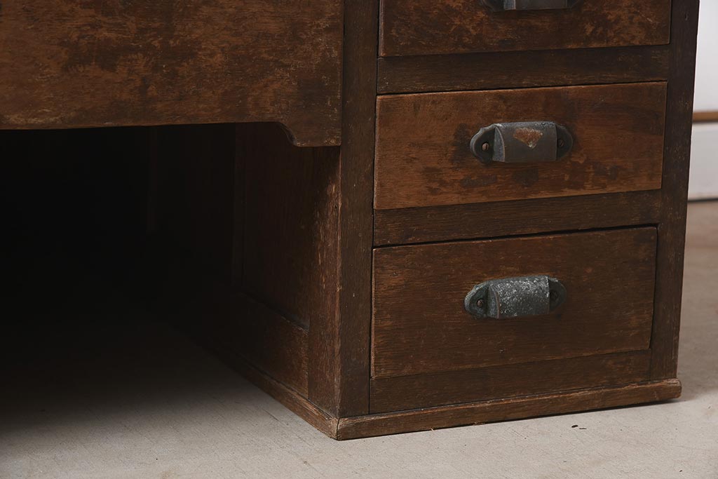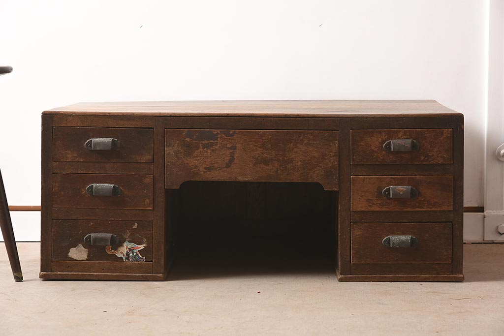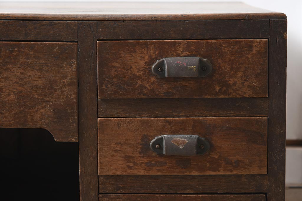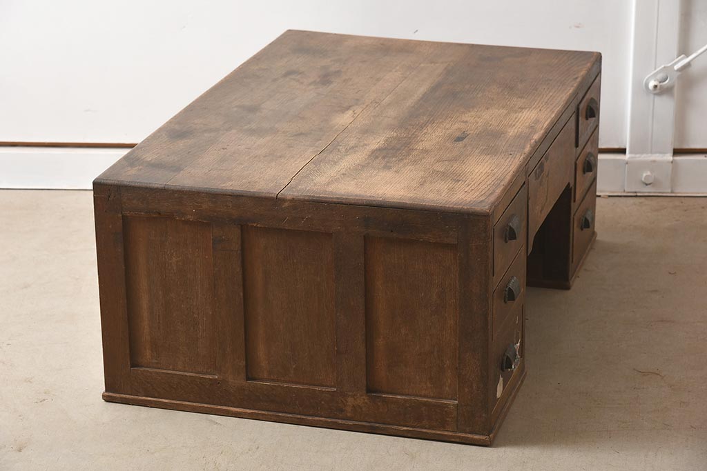 デスク> 片袖机・両袖机 > アンティーク家具 昭和初期 ナラ材 使い込まれた木の風合いが魅力の文机(両袖机、座机、ローテーブル)(R-039937)