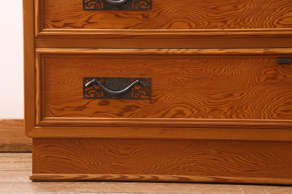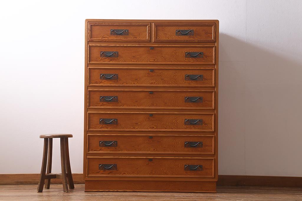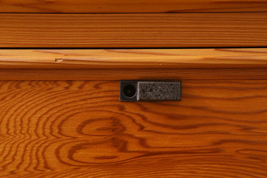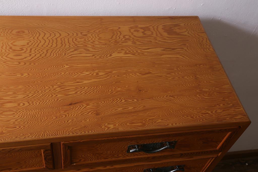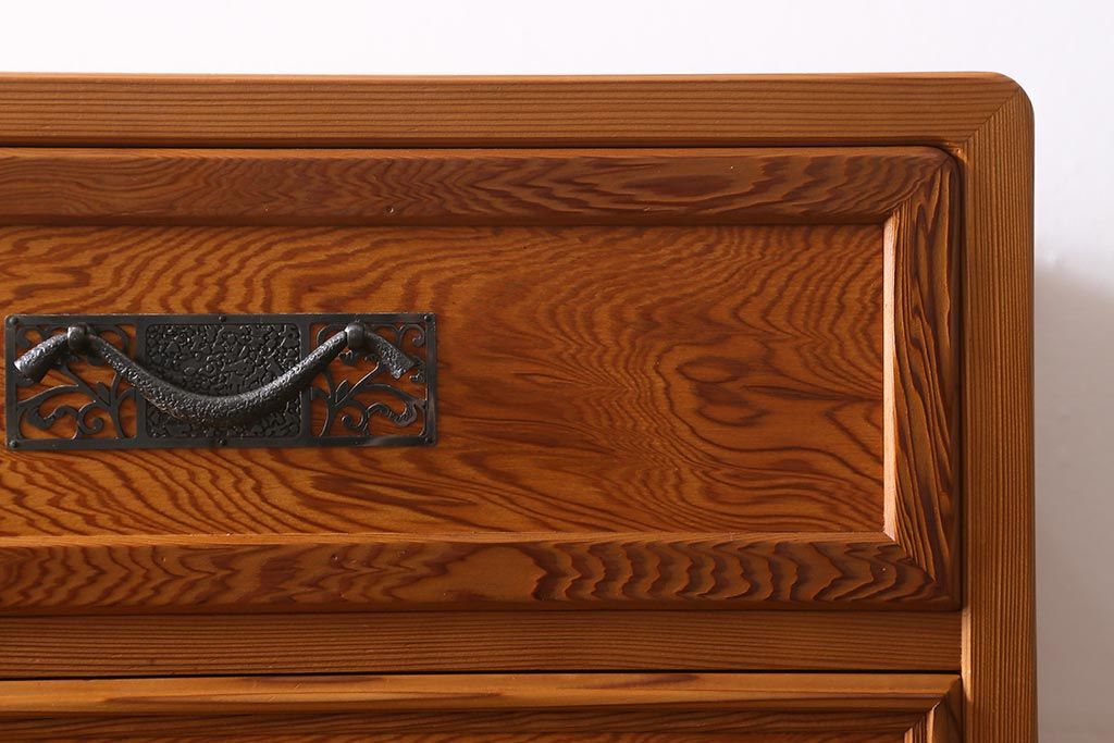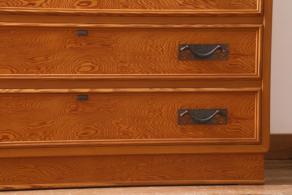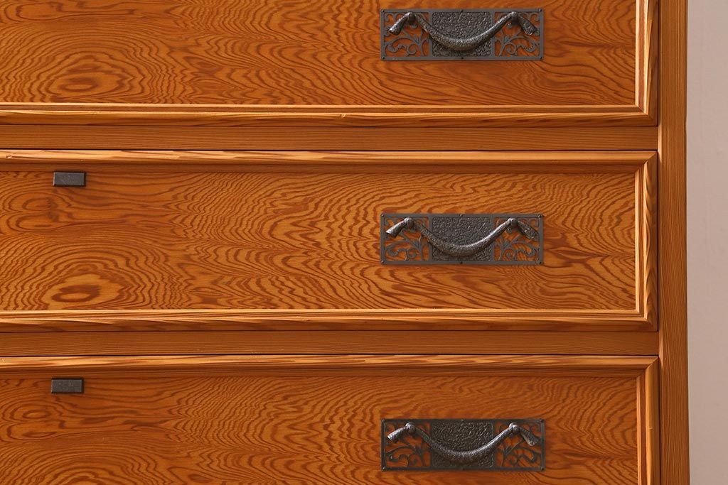 和箪笥 > 中古 民芸家具 屋久杉 中桐材 波打つような美しい木目に上品な金具が映えるチェスト(衣装箪笥、引き出し、桐箪笥、桐たんす)(R-039814)