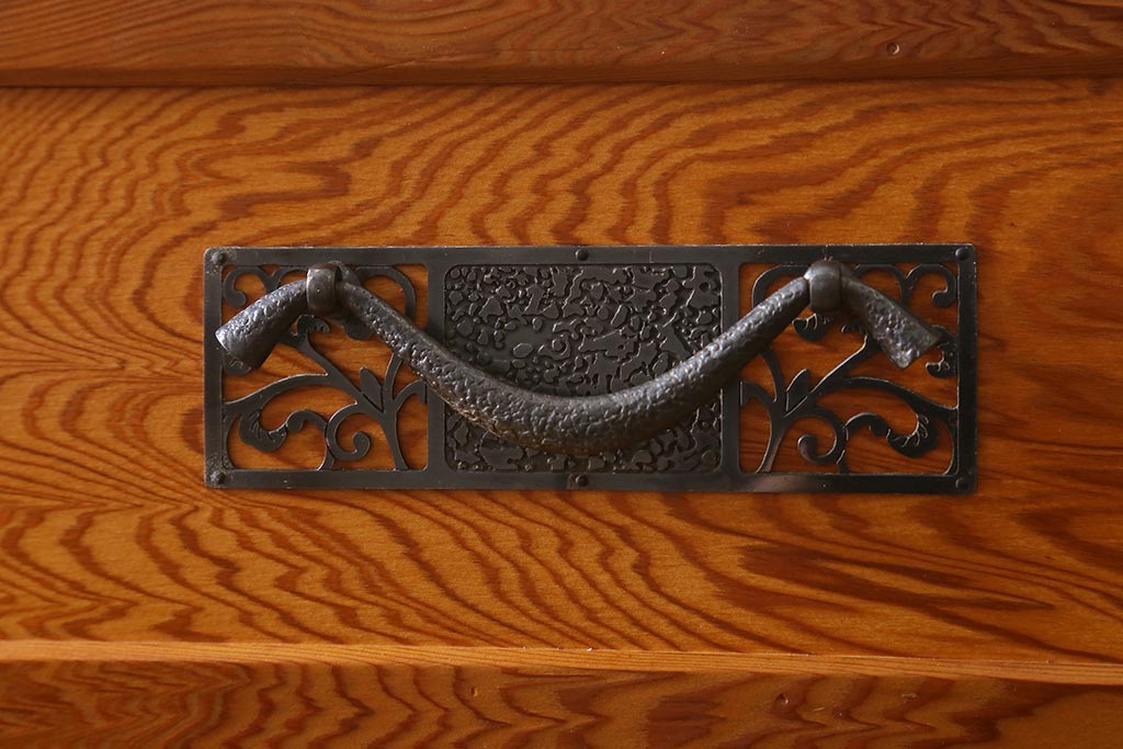 民芸家具 > 中古 民芸家具 屋久杉 中桐材 波打つような美しい木目に上品な金具が映えるチェスト(衣装箪笥、引き出し、桐箪笥、桐たんす)(R-039814)