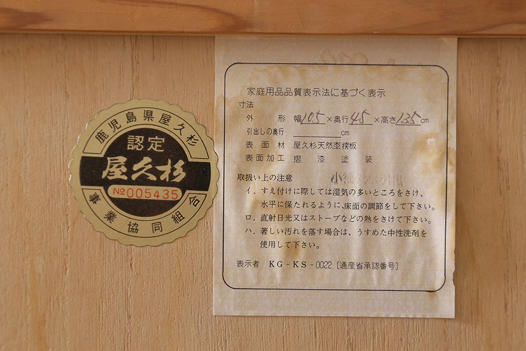 屋久杉を使用したチェストです。