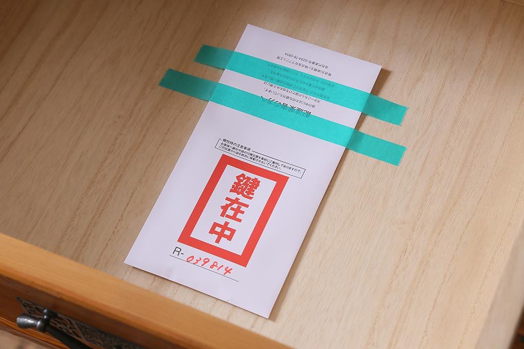 鍵は付属します。画像にありますように、袋に入れお付けします。スムーズに動くように調整していますが、あくまでも古いものや中古品ですので、長期の使用保証は出来かねます。ご購入後不具合が発生した場合は、当店でサポートさせていただきますので、お気軽にご相談くださいませ。