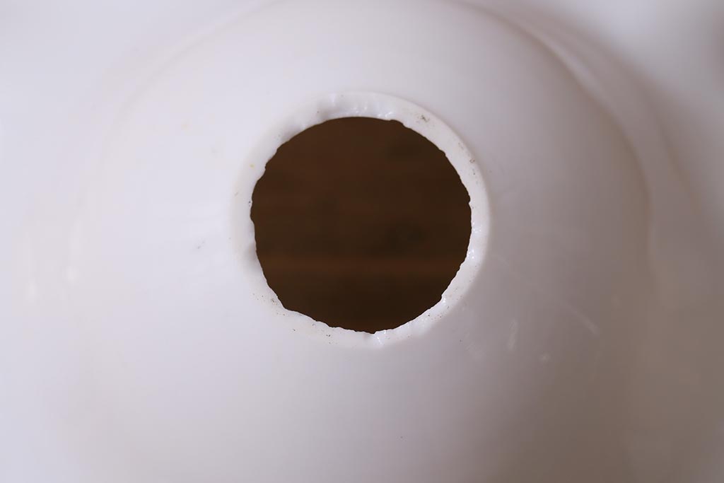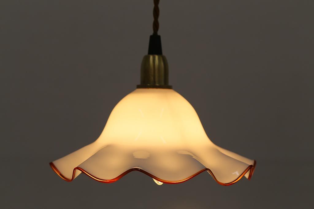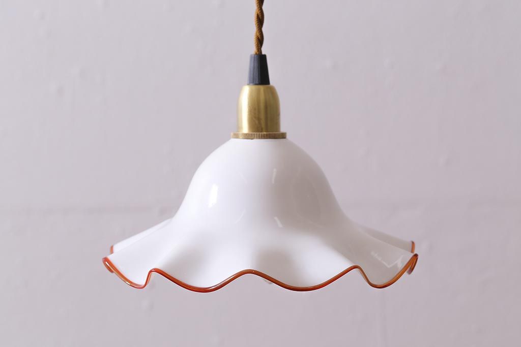 照明・ランプ> ペンダントライト > イギリスヴィンテージ照明 橙縁フリルが可愛いミルクガラスペンダントライト(ランプシェード、天井照明、ビンテージ、吊り下げ照明)(R-039914)