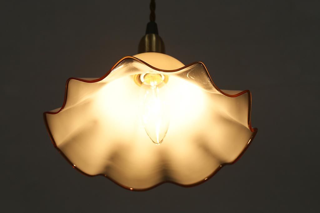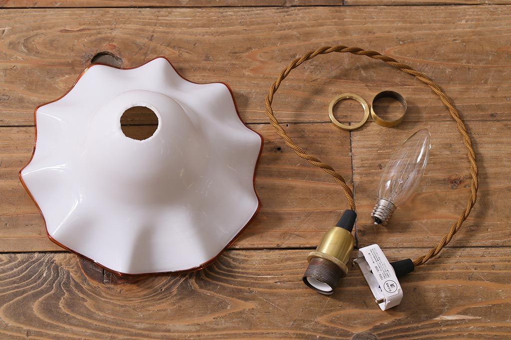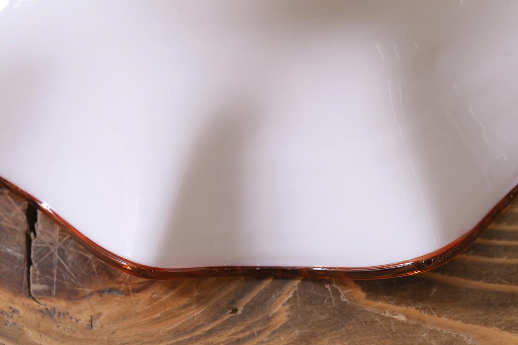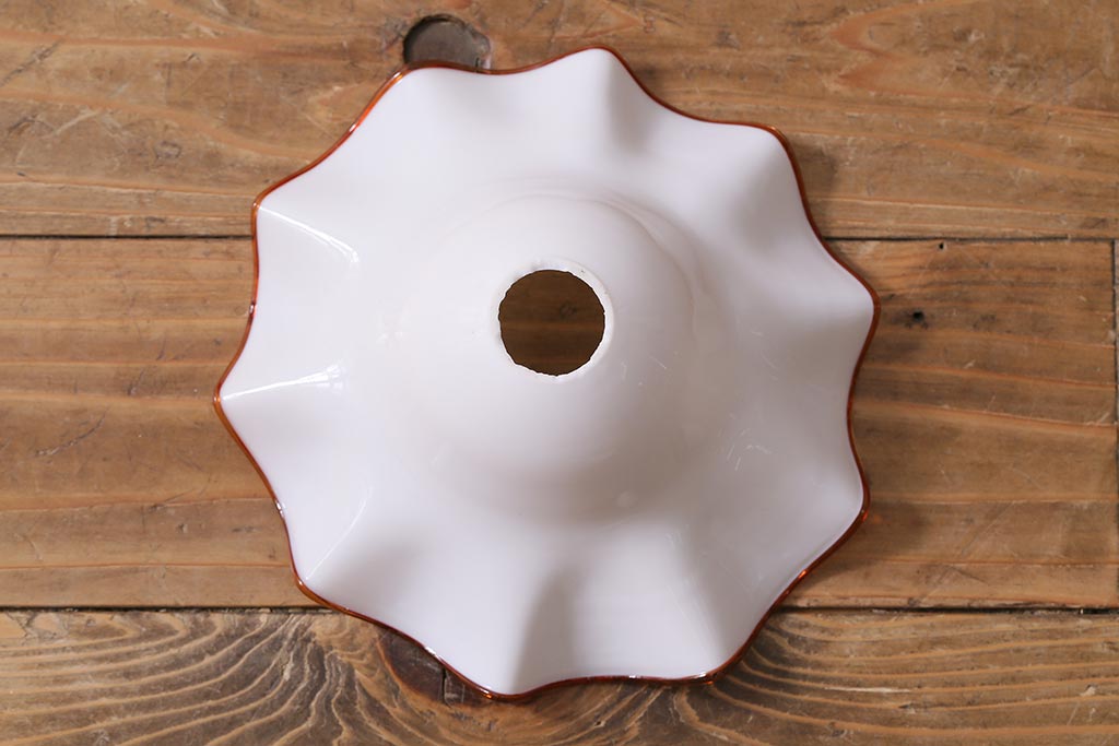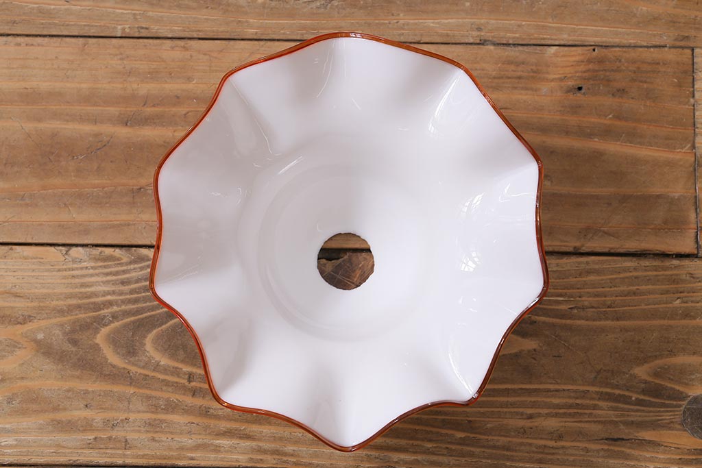 イギリスヴィンテージ照明 橙縁フリルが可愛いミルクガラスペンダントライト(ランプシェード、天井照明、ビンテージ、吊り下げ照明)(R-039914)
