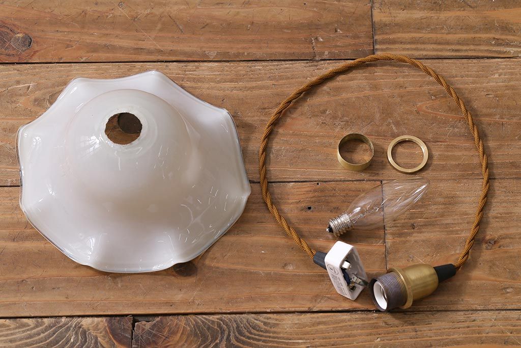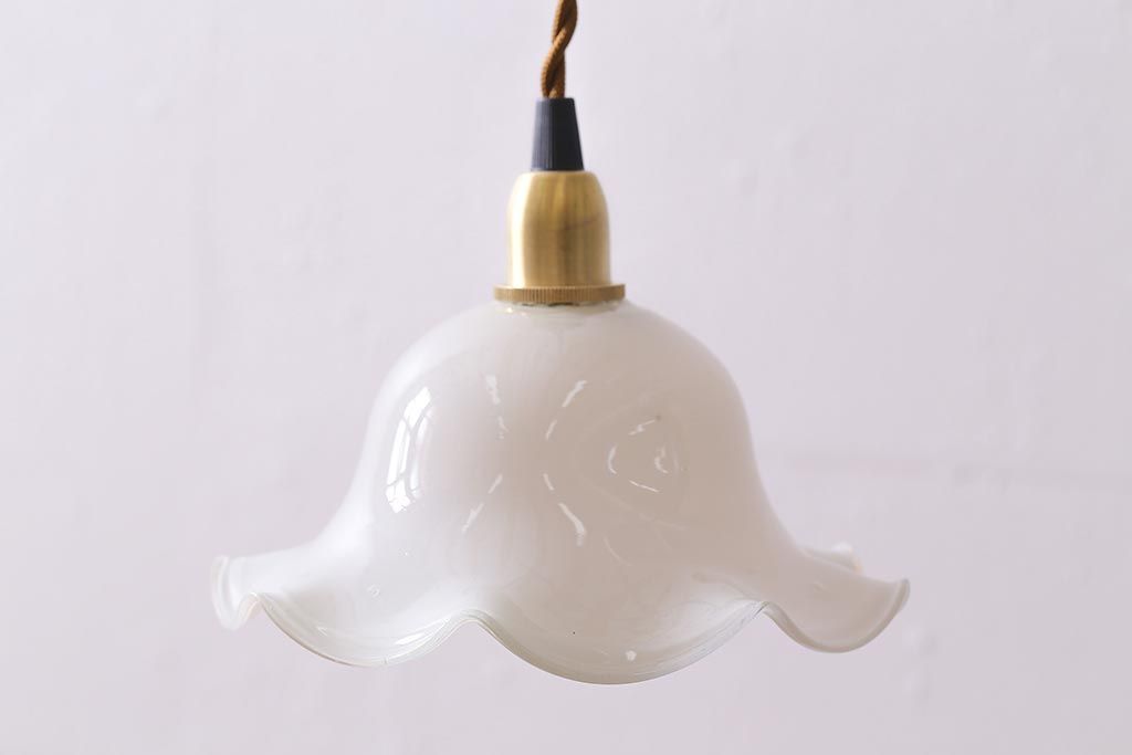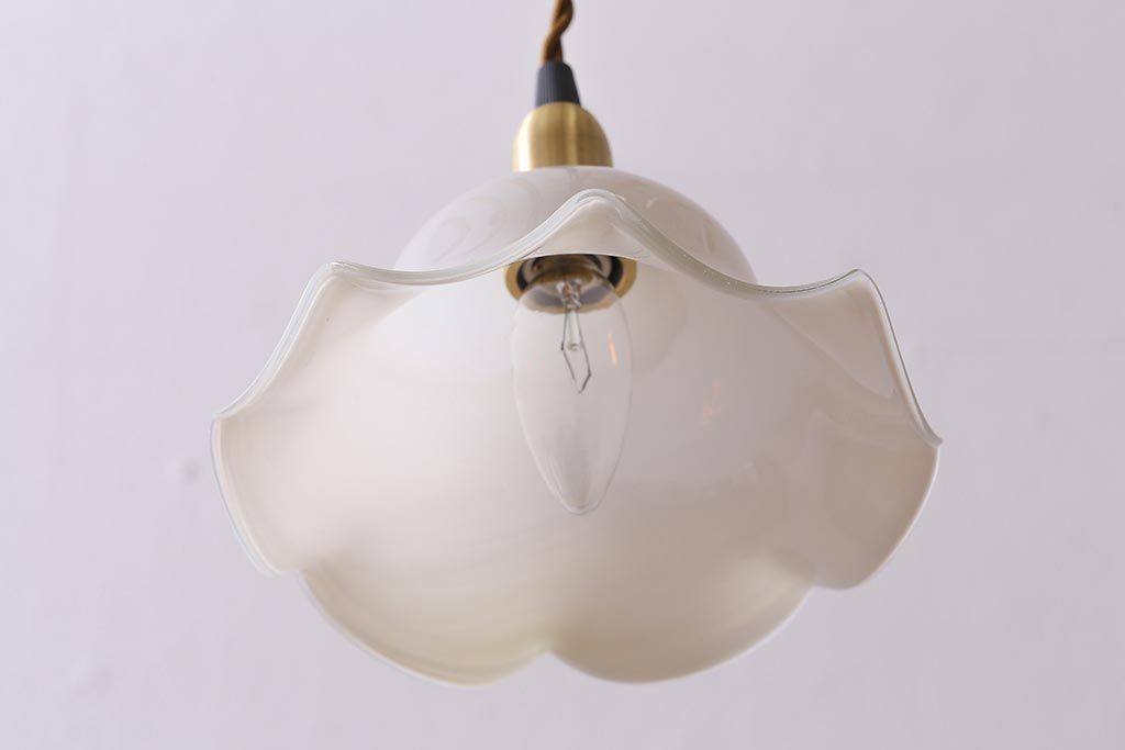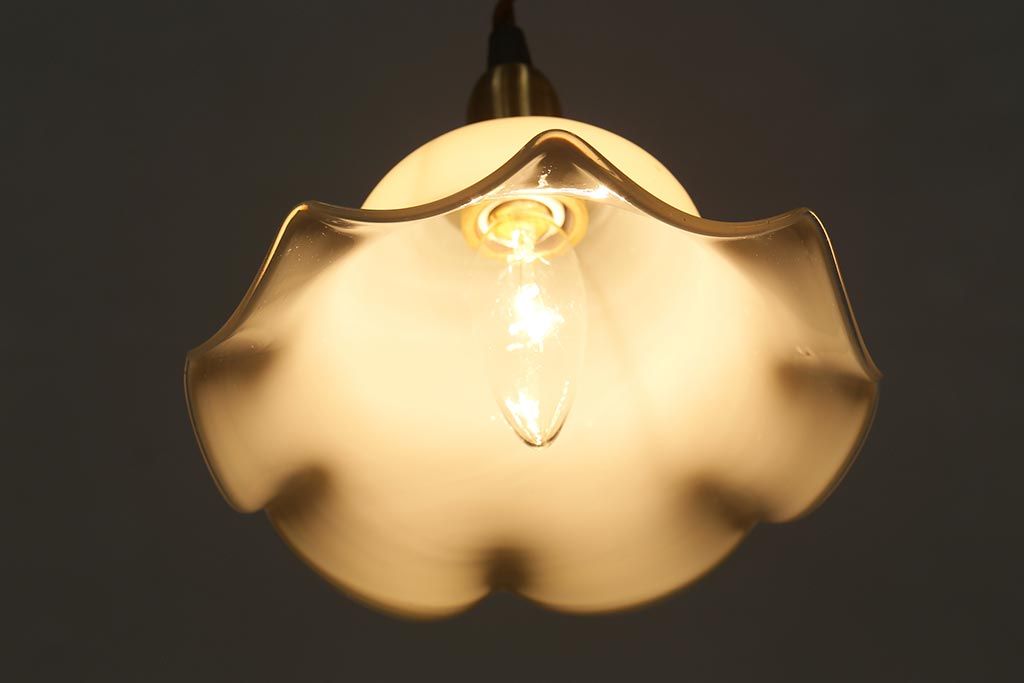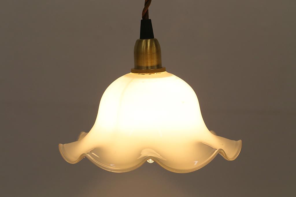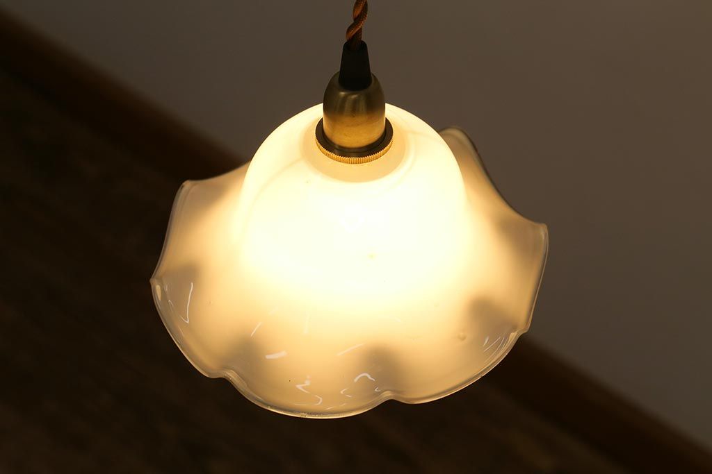 イギリスヴィンテージ照明 上品なフリルシェードのペンダントライト(ランプシェード、天井照明、ビンテージ、吊り下げ照明)(R-039915)