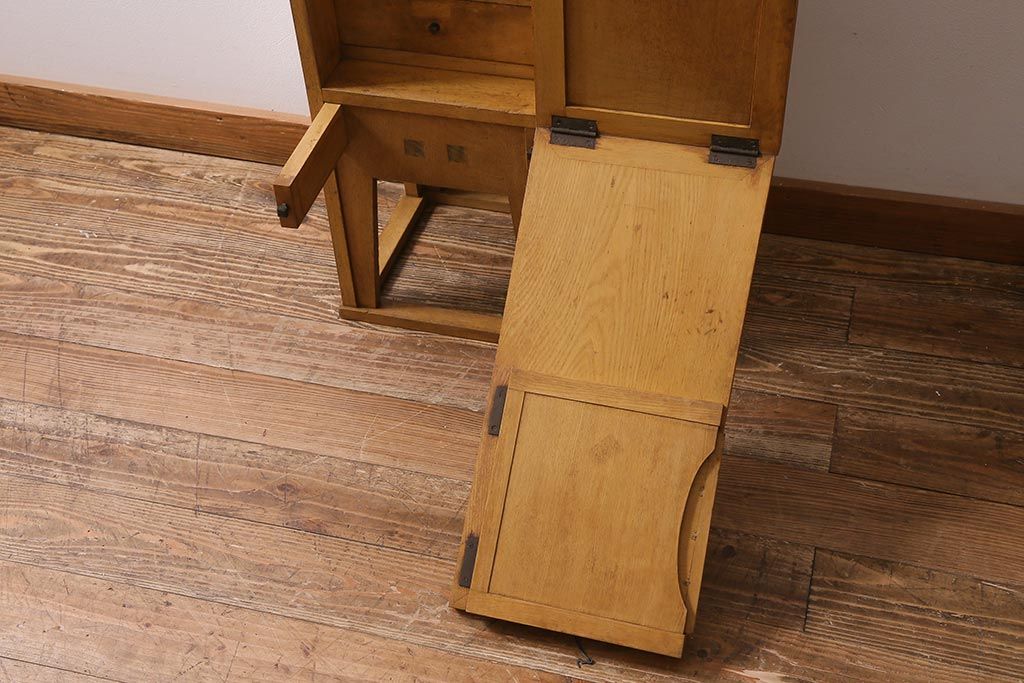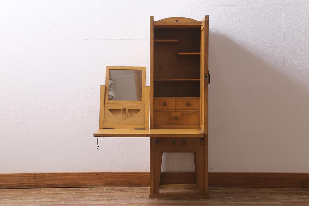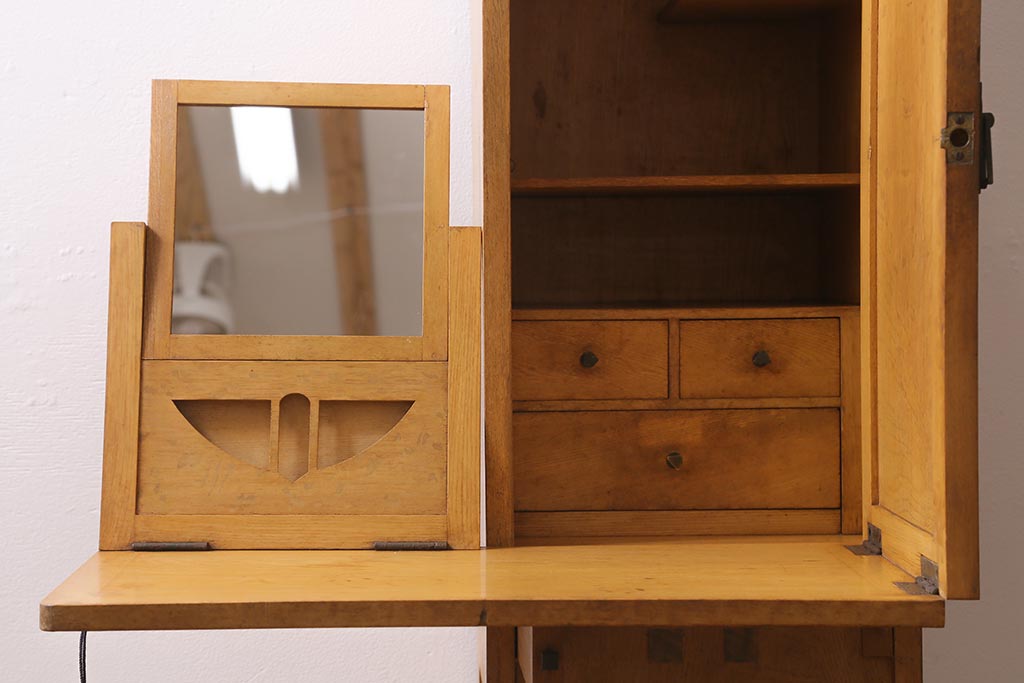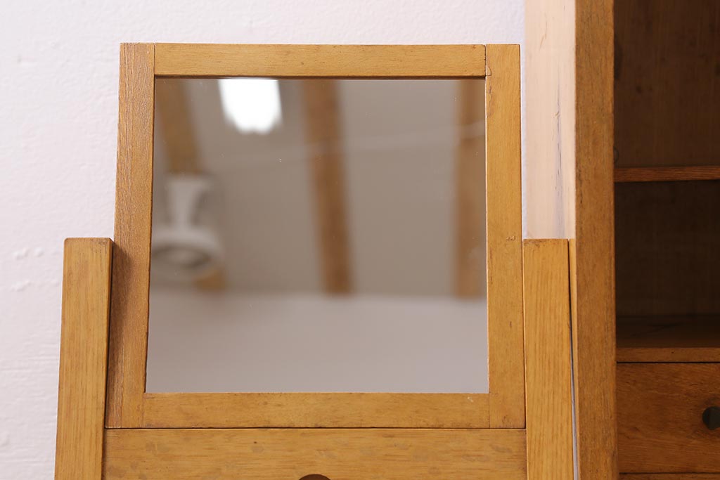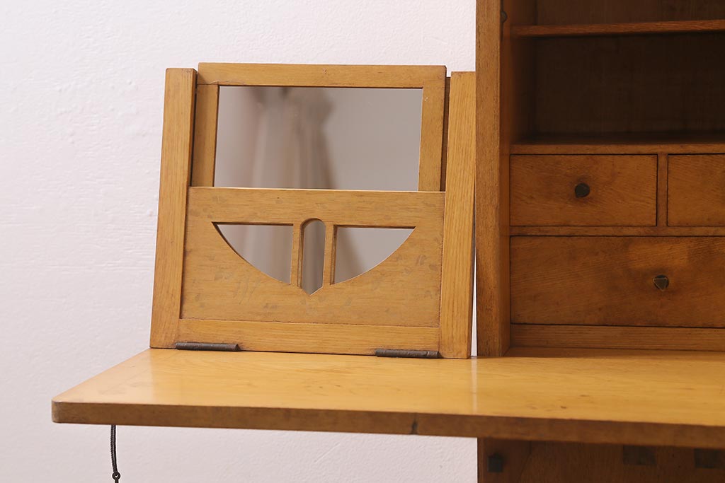 アンティーク家具 和製アンティーク 超激レア! ナラ材のコンパクトな収納式ドレッサー(鏡台、収納棚、机)(R-039844)