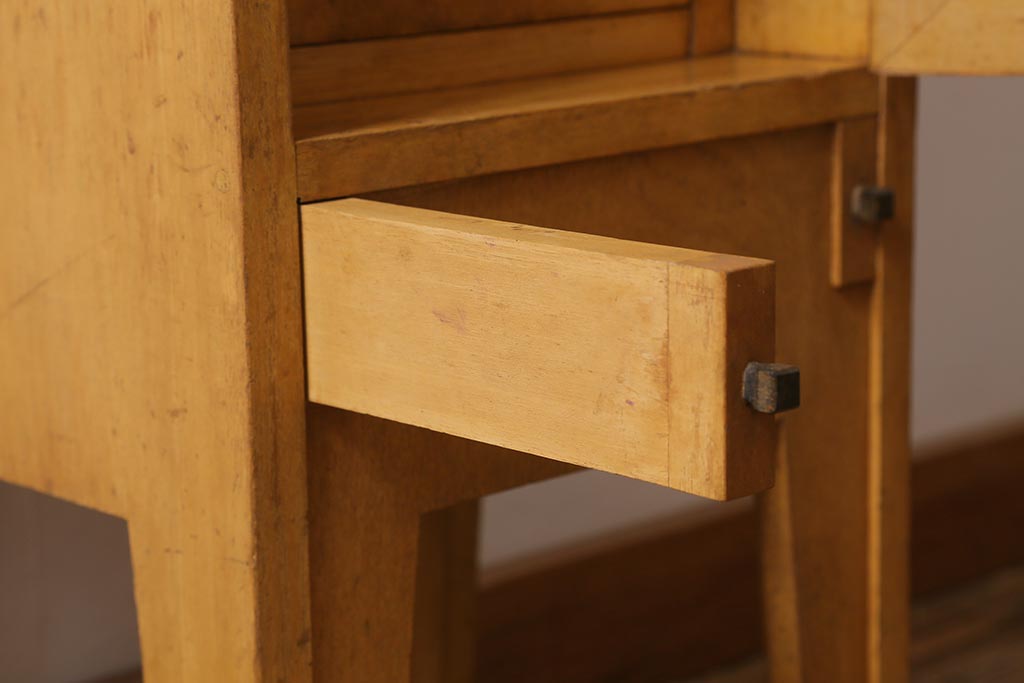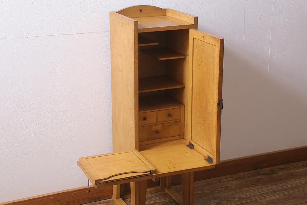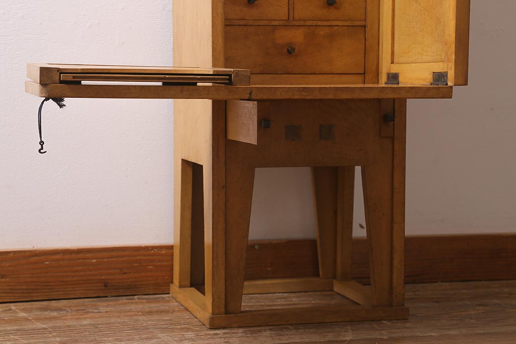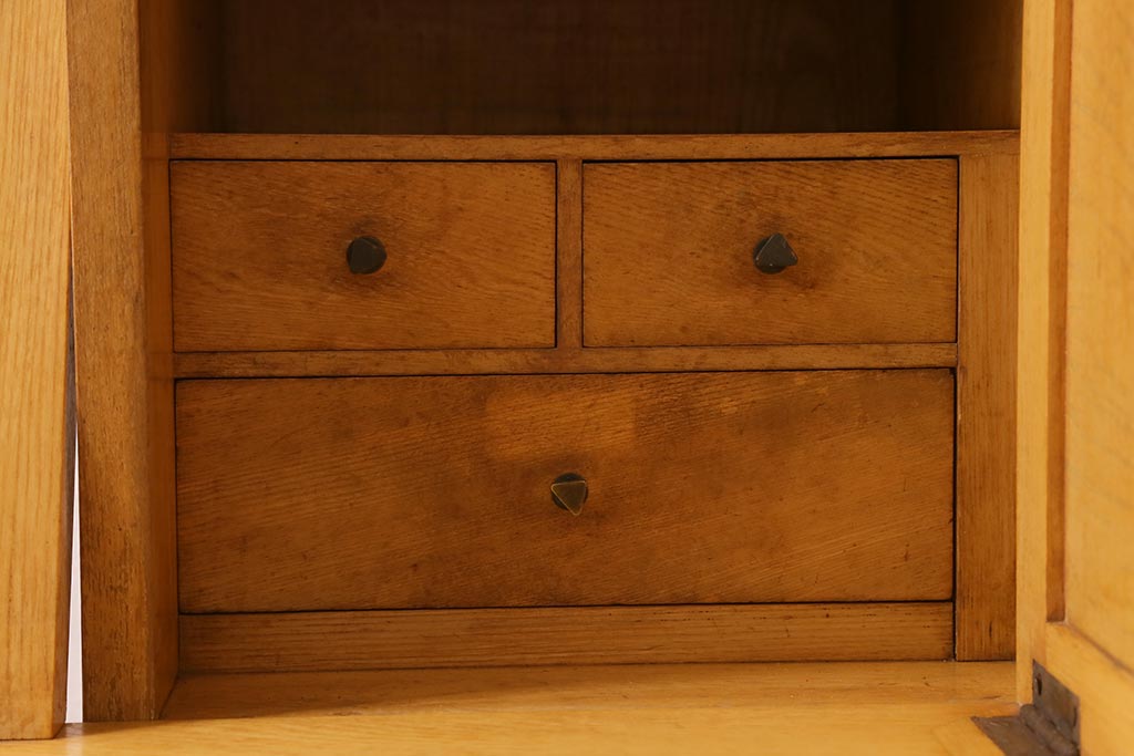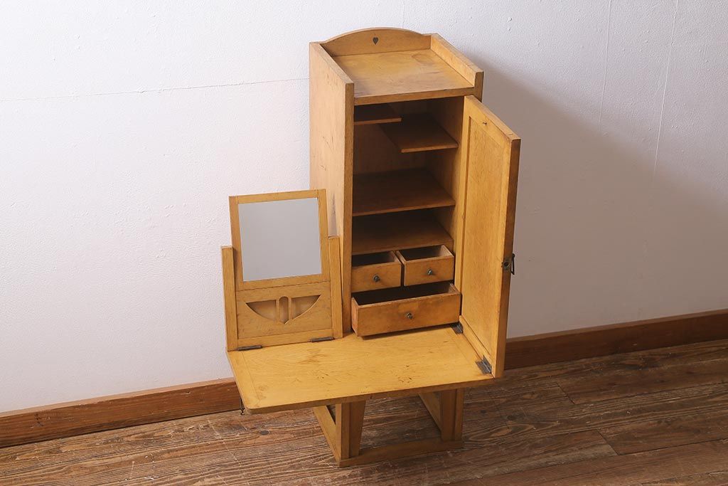 アンティーク家具 和製アンティーク 超激レア! ナラ材のコンパクトな収納式ドレッサー(鏡台、収納棚、机)(R-039844)