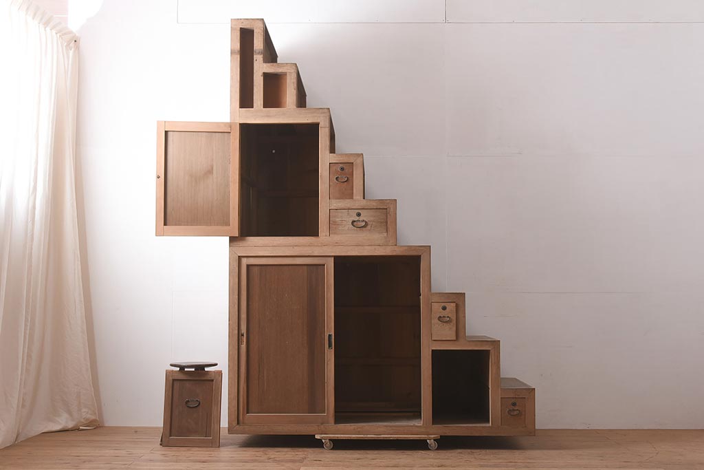 アンティーク家具 古民具 明治大正期 上手物!和の情緒あふれる佇まいの重ね階段箪笥(R-037182)です。