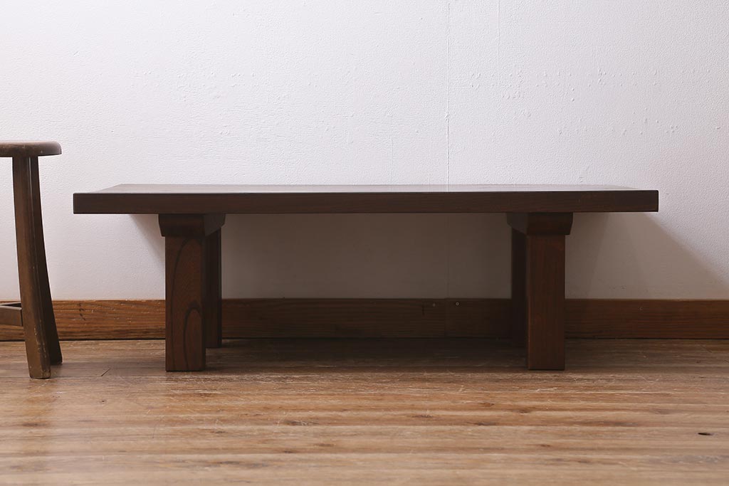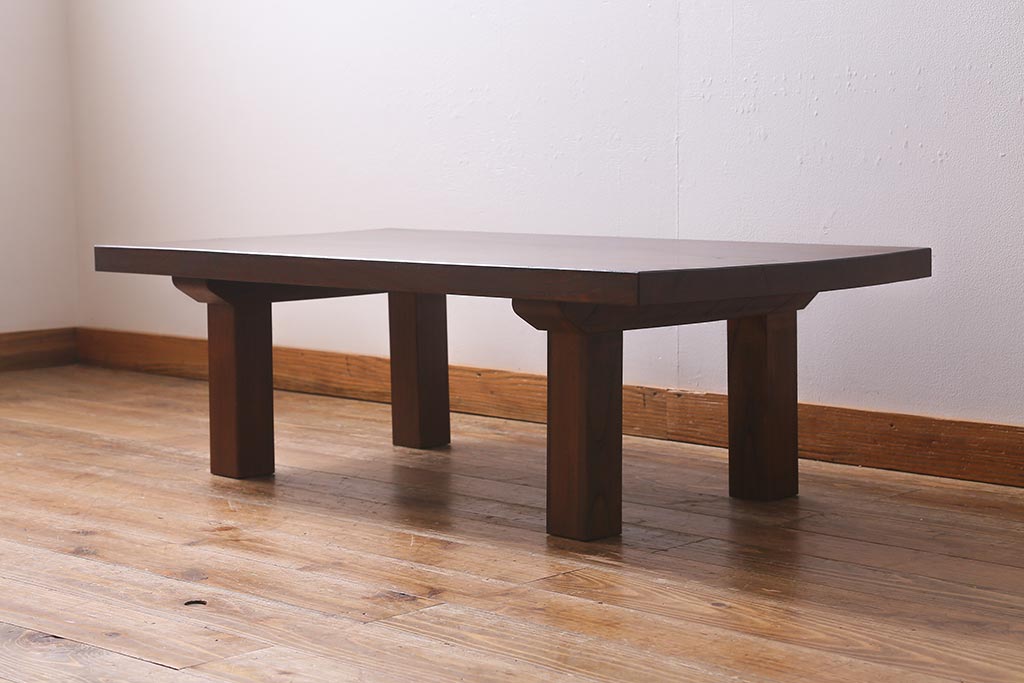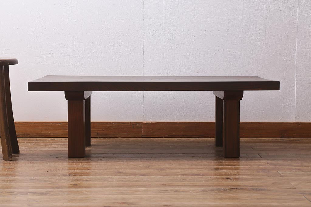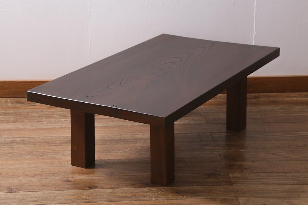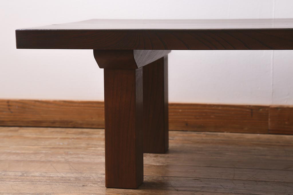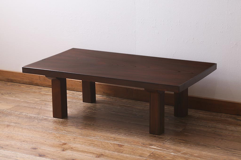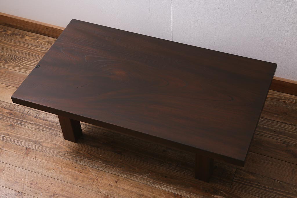 ビンテージ家具 和製ビンテージ 総ケヤキ・天板一枚板 滑らかな木肌が魅力のセンターテーブル(座卓、ローテーブル)(R-039818)です。