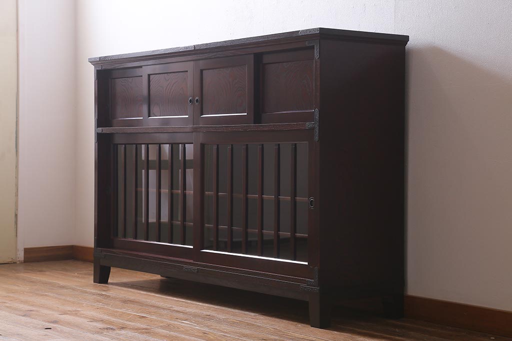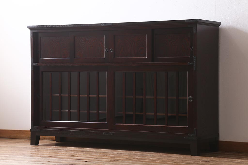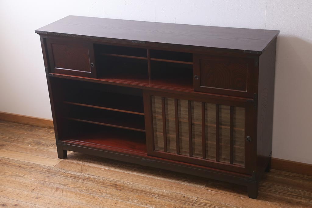 中古 筑後民芸家具 脚付リメイク 和モダンスタイルを高めるサイドボード(戸棚、キャビネット)(R-039955)