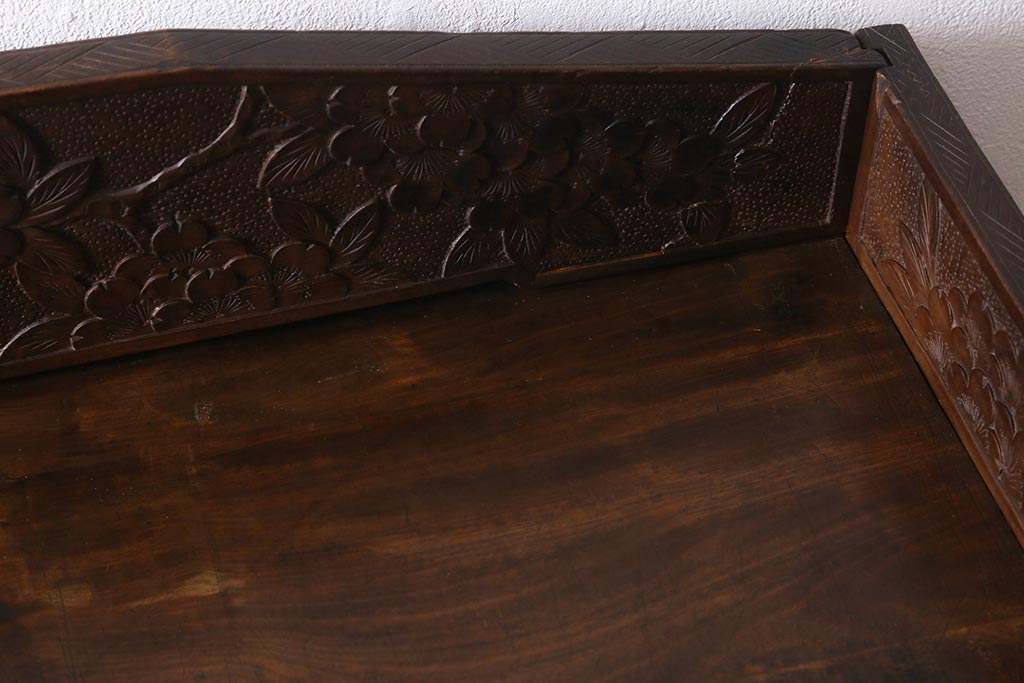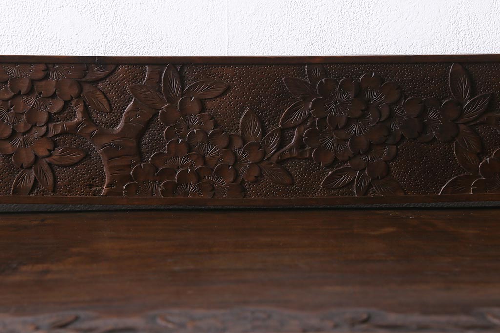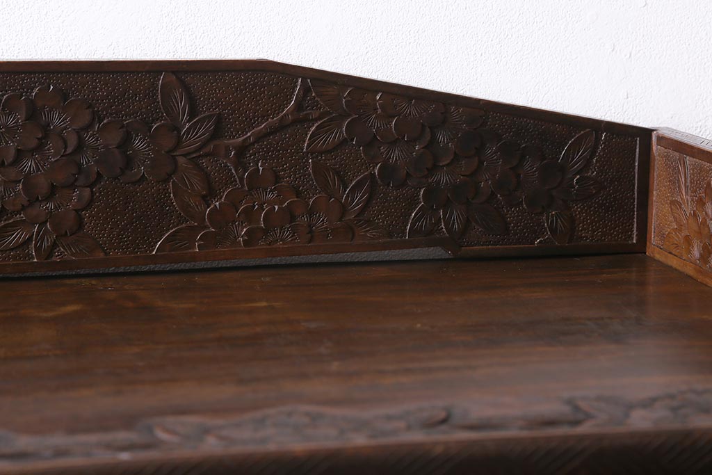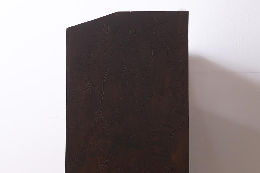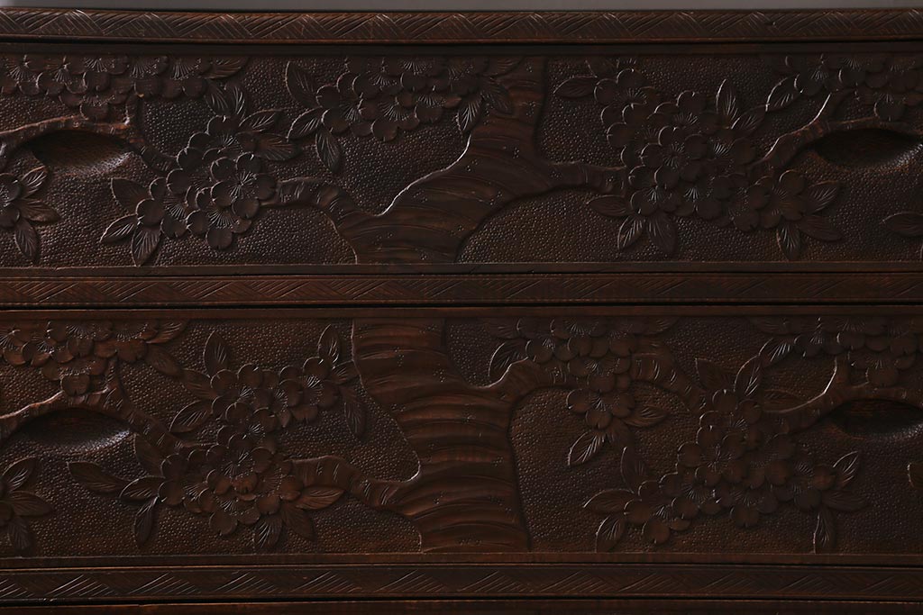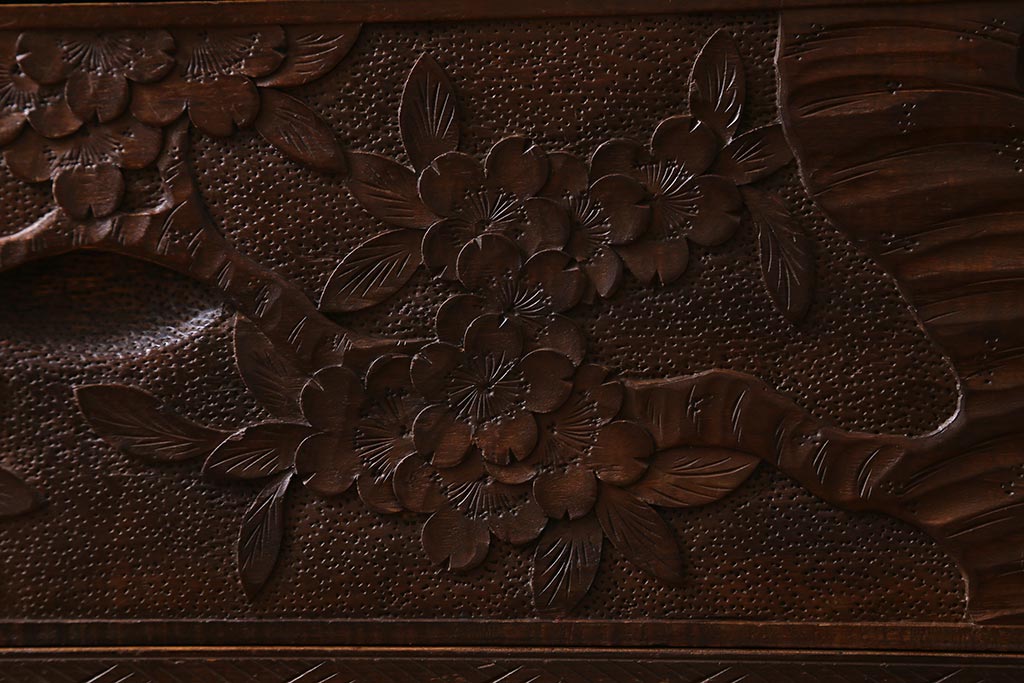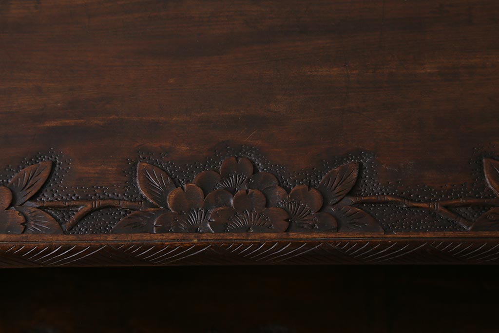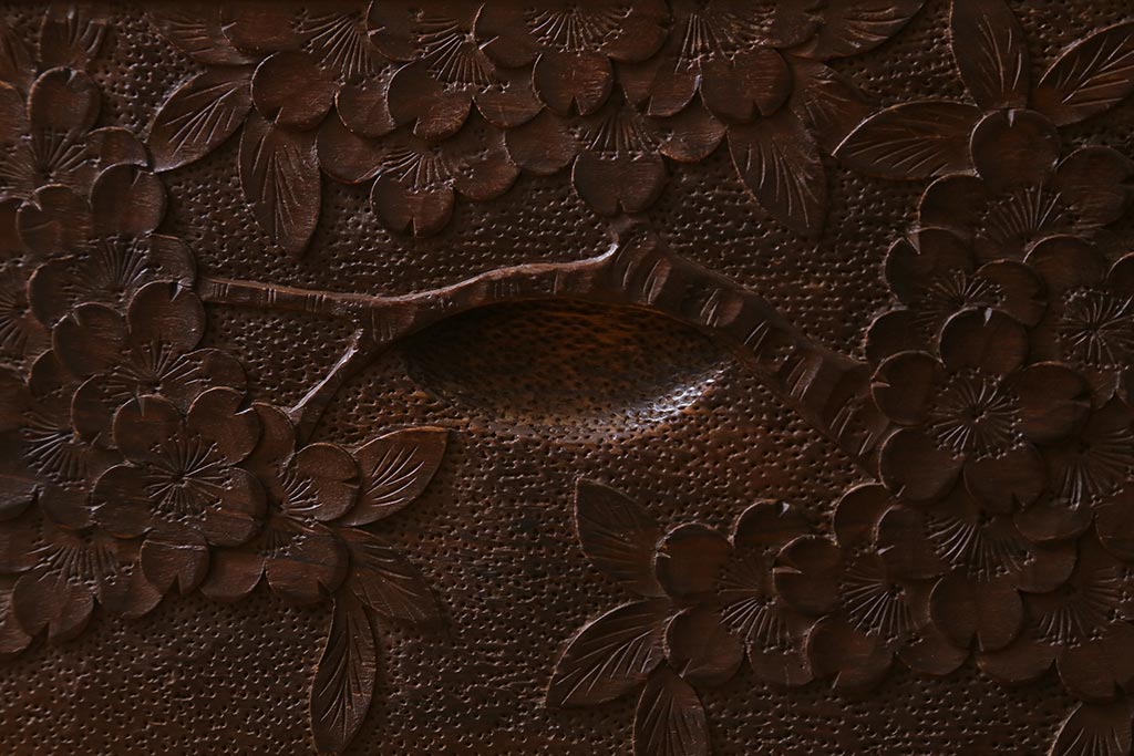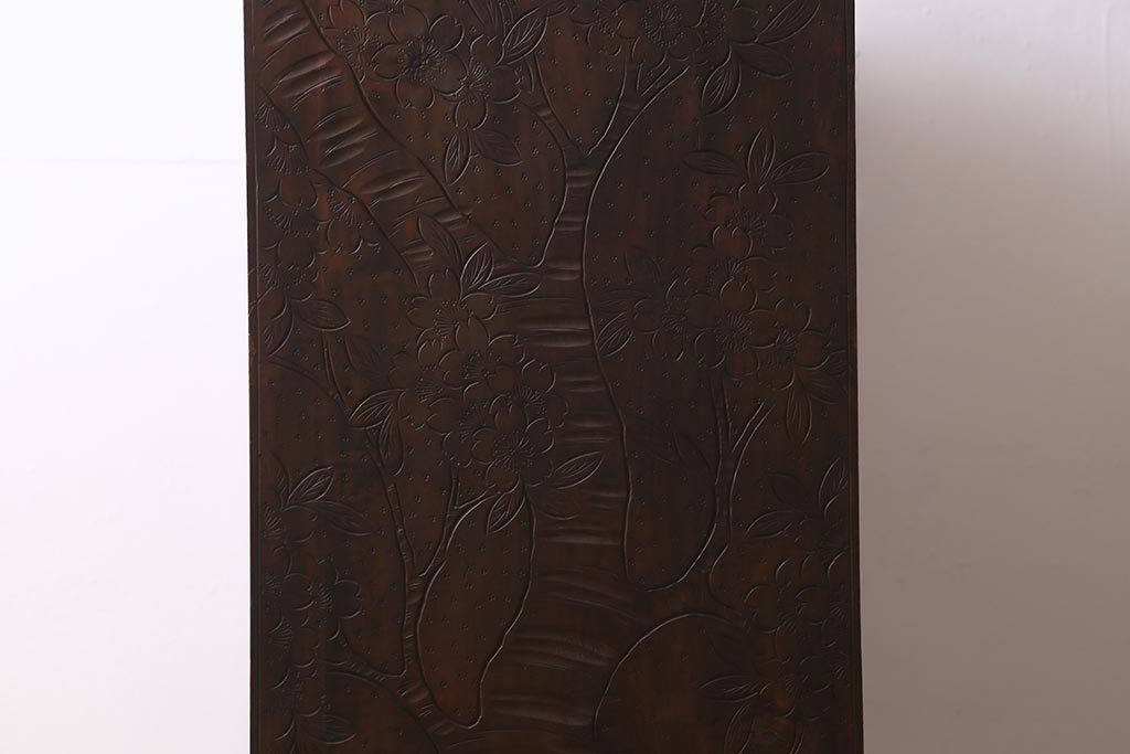 ラフジュ工房> 民芸家具 > ビンテージ家具 伝統工芸 軽井沢彫り 繊細な彫りが豪華さを演出する棚付きチェスト(衣装タンス、引き出し)(R-039943)