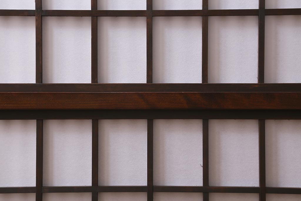 裏障子は倹飩式で取り外しが可能です。裏障子を少し持ち上げ、下部を手前に引くと、取り外すことができます。