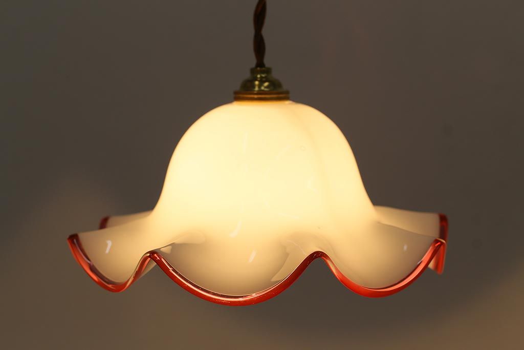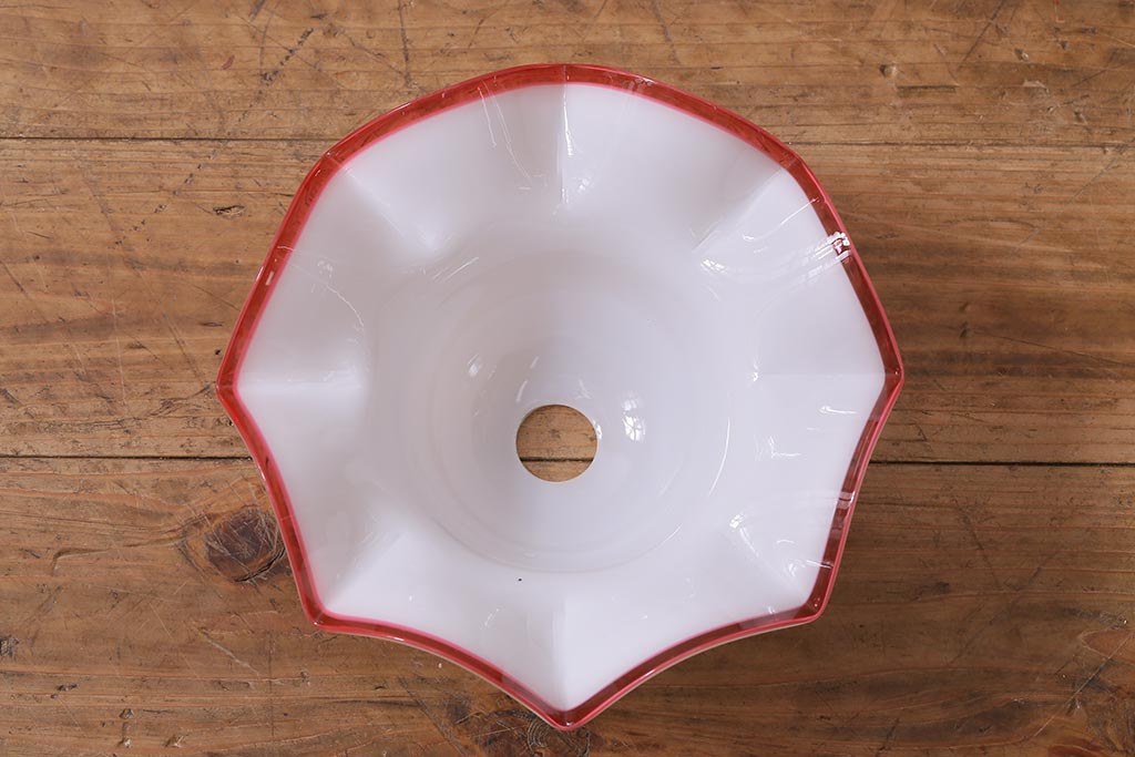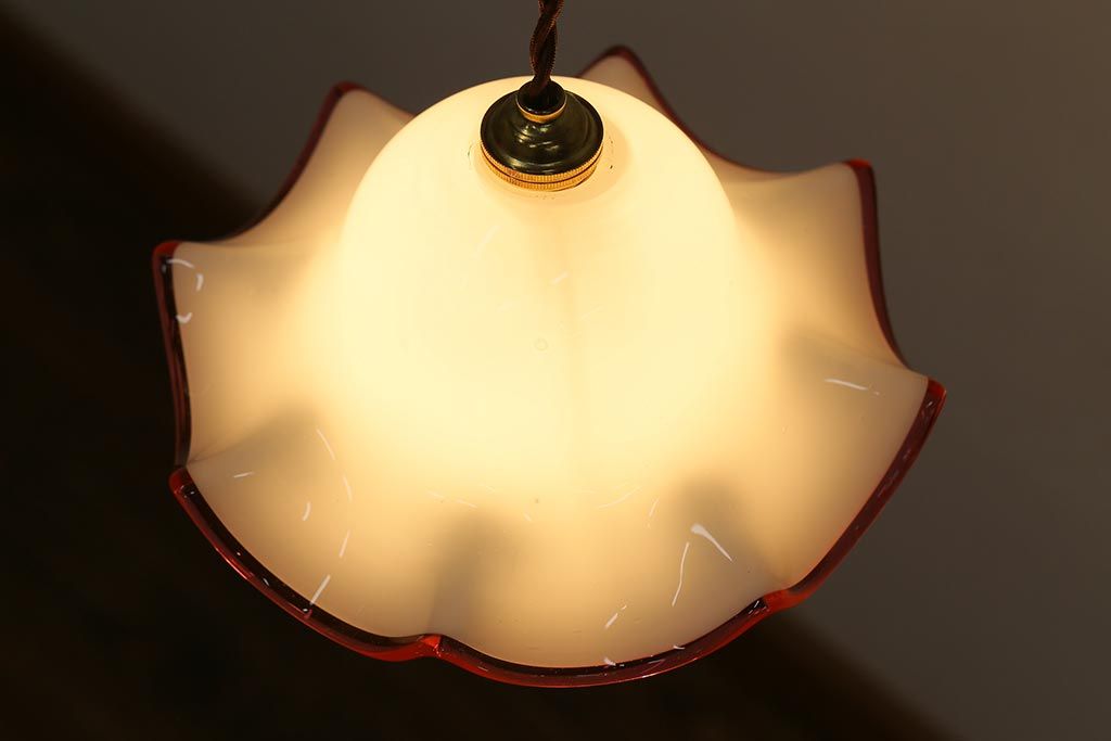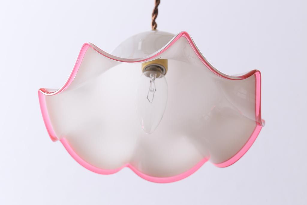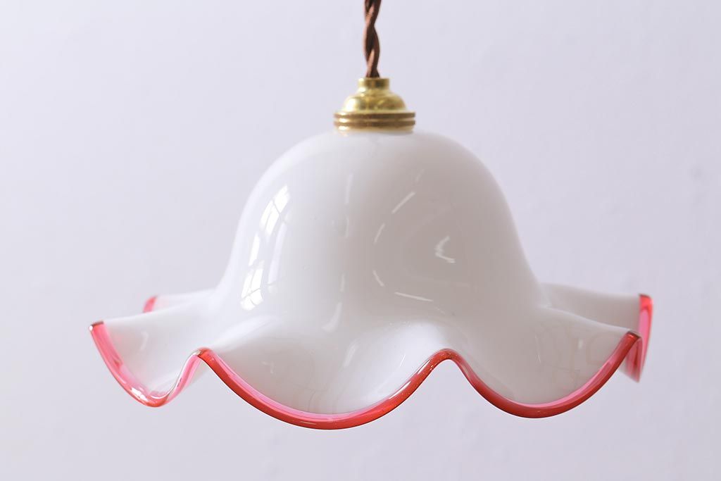 ヴィンテージ照明 イギリスビンテージ ピンク縁 愛らしいフリルのミルクガラスペンダントライト(ランプシェード、天井照明)(R-039920)