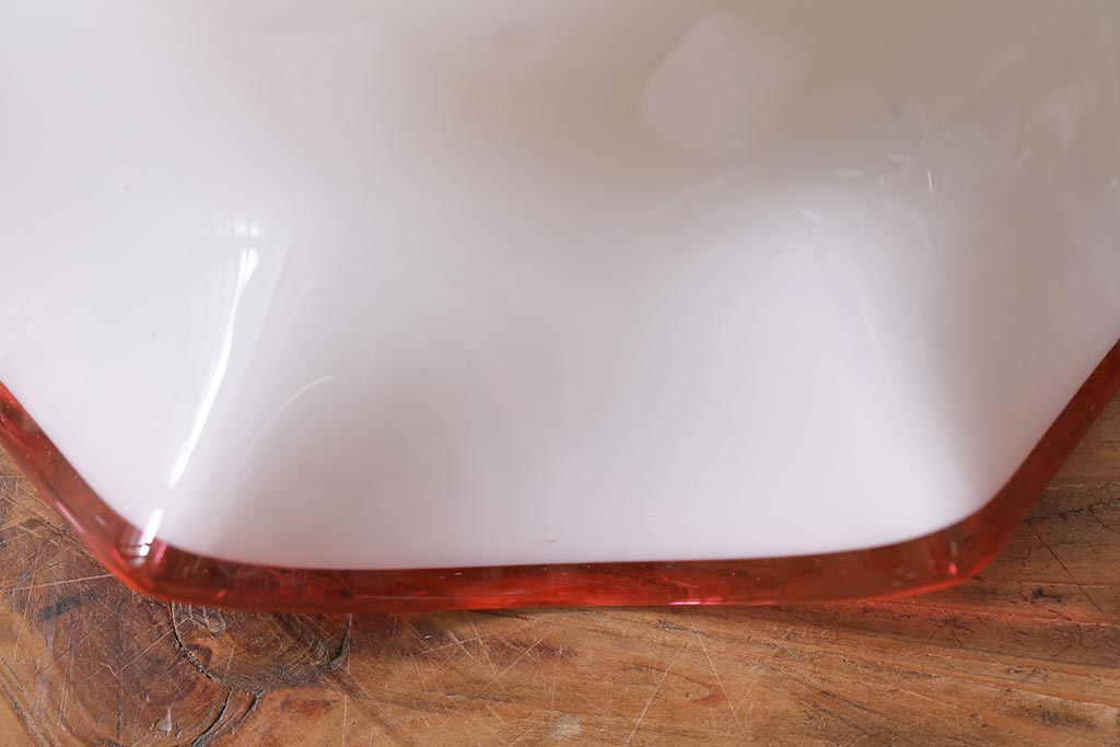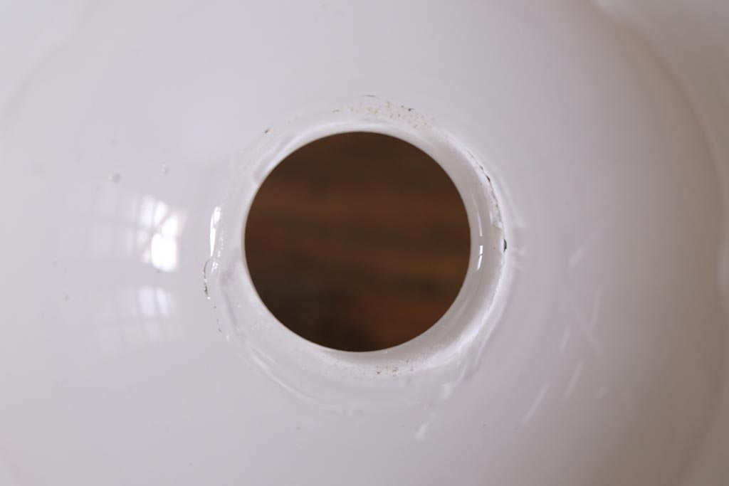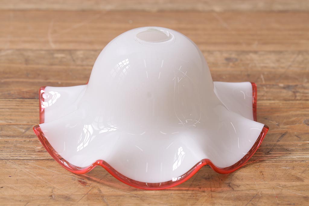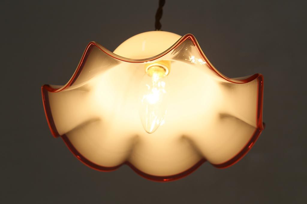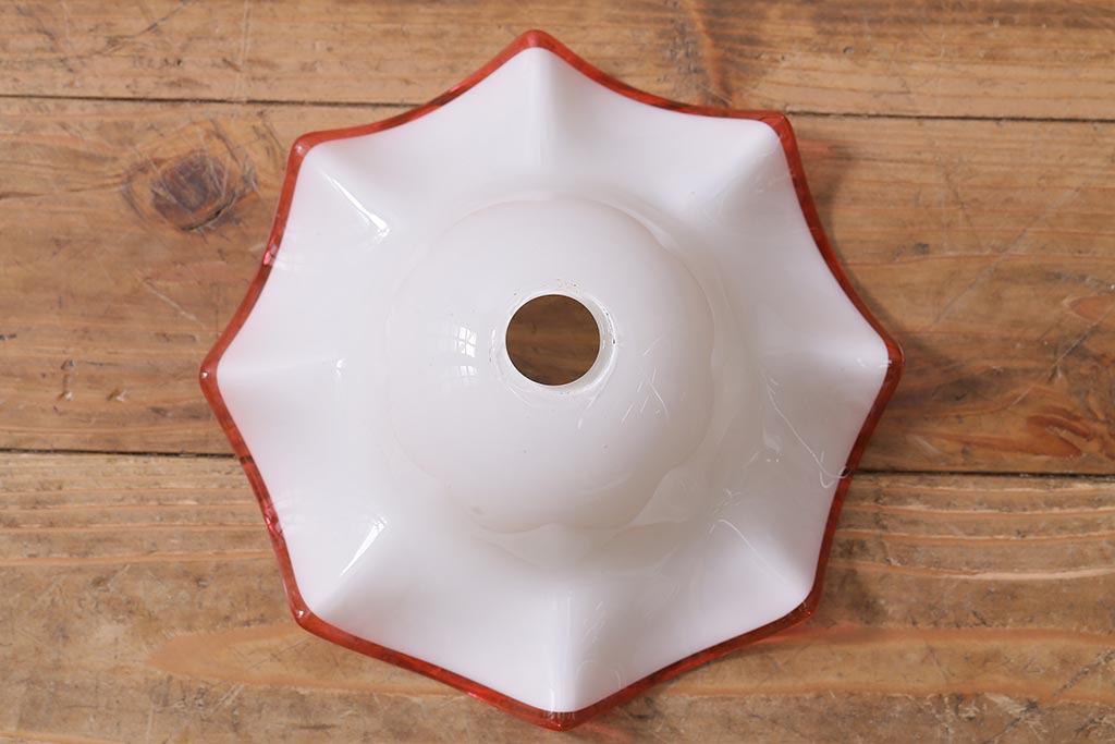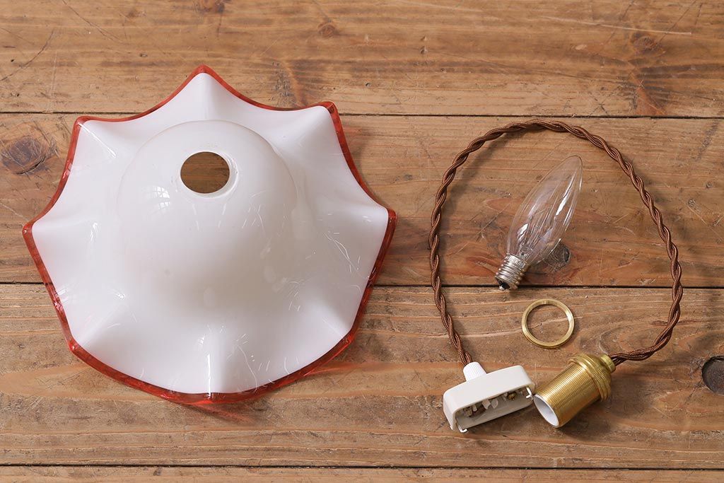 ヴィンテージ照明 イギリスビンテージ ピンク縁 愛らしいフリルのミルクガラスペンダントライト(ランプシェード、天井照明)(R-039920)