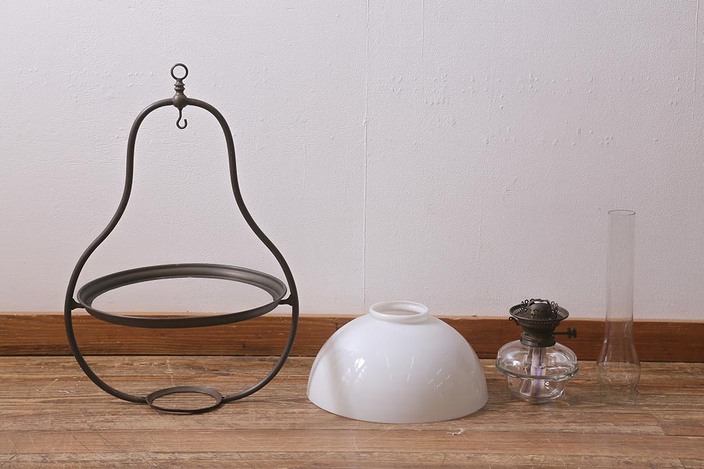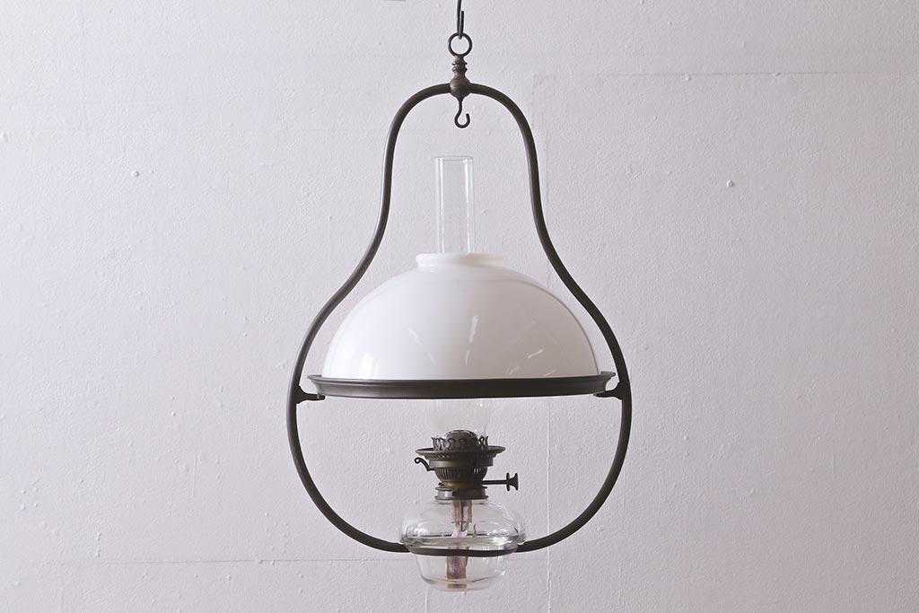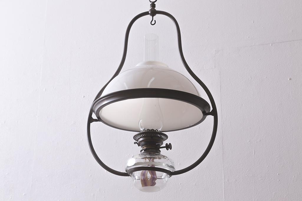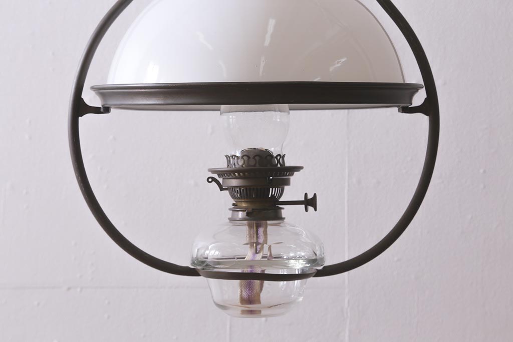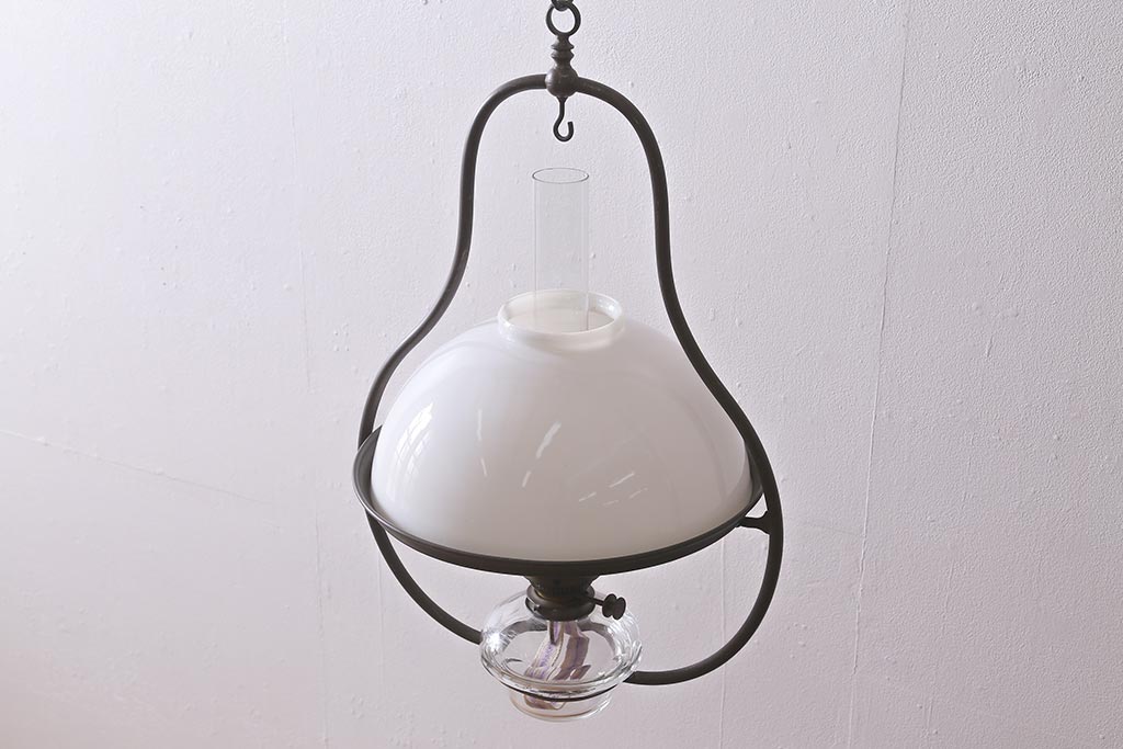 ヴィンテージ雑貨 イギリスビンテージ 8分芯 HINKS 1950年 メンズライクにおすすめな銅金具の吊り下げ式オイルランプ(ランタン、ハンギングランプ)(R-039930)