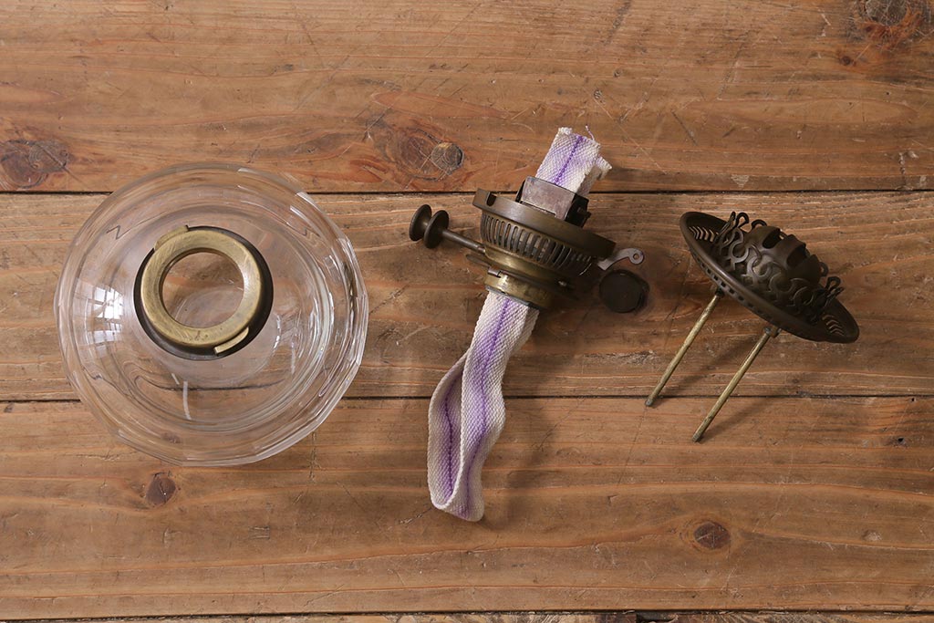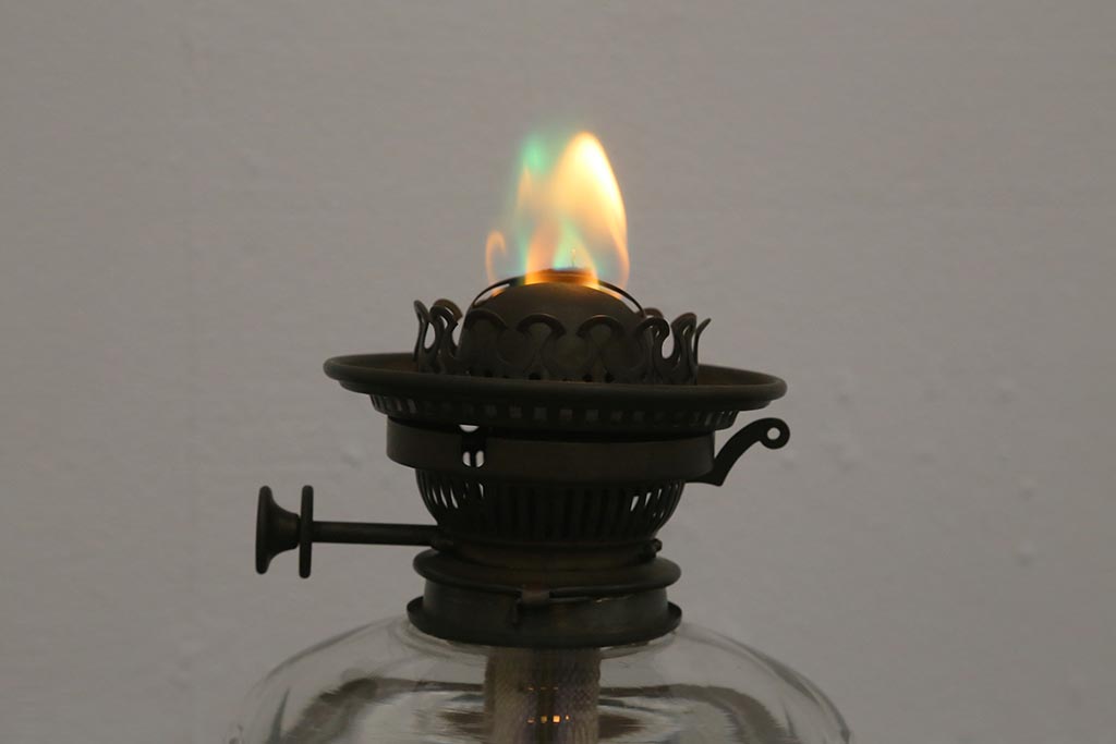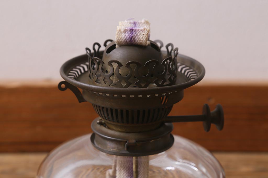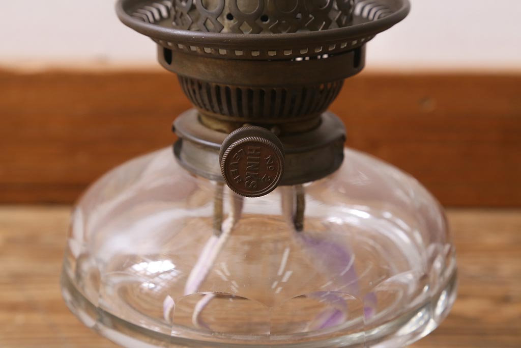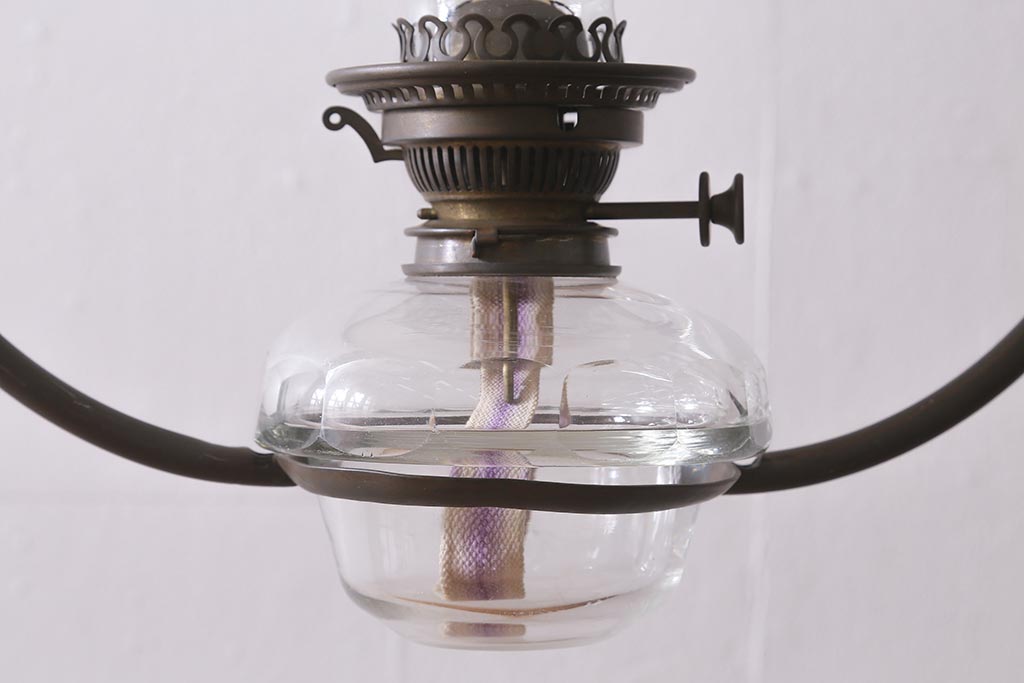 照明・ランプ> ランタン・オイルランプ > ヴィンテージ雑貨 イギリスビンテージ 8分芯 HINKS 1950年 メンズライクにおすすめな銅金具の吊り下げ式オイルランプ(ランタン、ハンギングランプ)(R-039930)