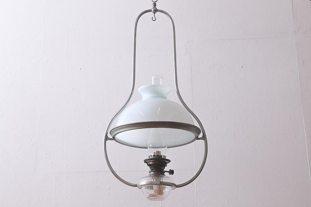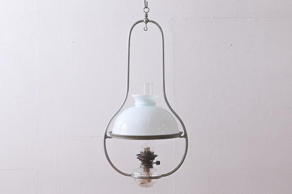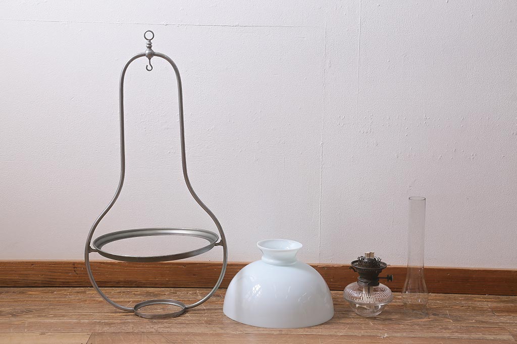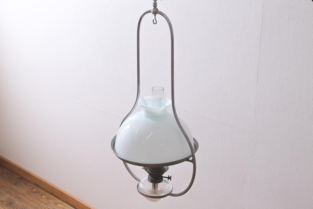 ヴィンテージ雑貨 イギリスビンテージ 8分芯 HINKS 1950年 フレンチシャビーに合う吊り下げ式オイルランプ(ランタン、ハンギングランプ)(R-039931)