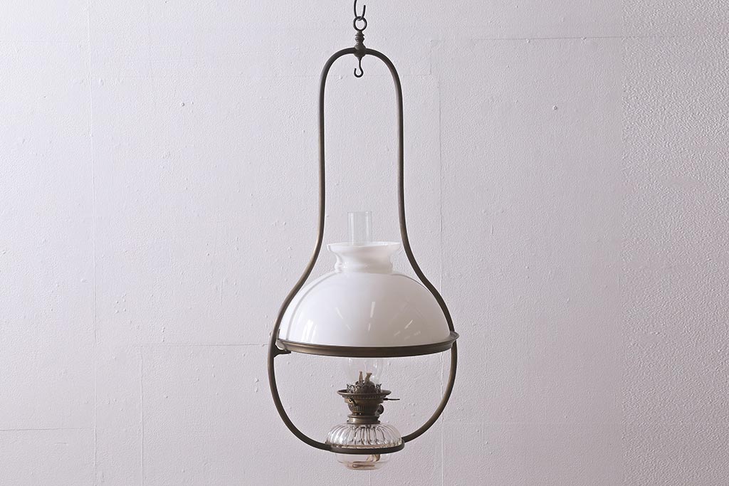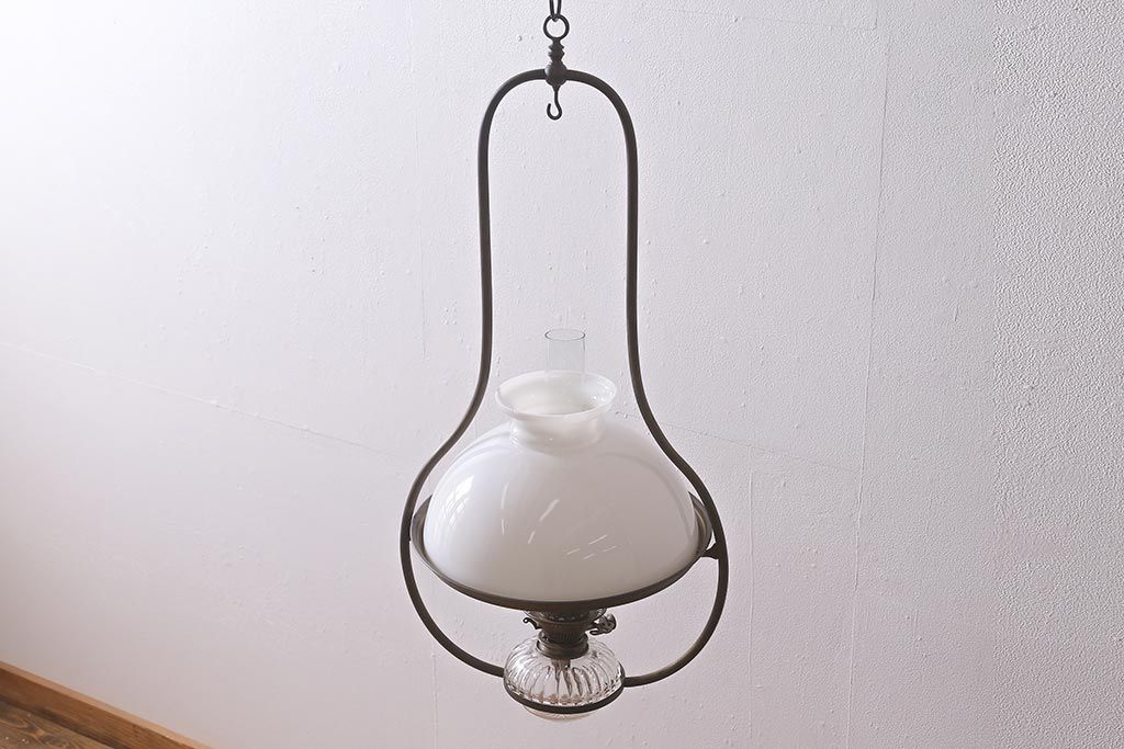 ヴィンテージ雑貨 イギリスビンテージ 8分芯 HINKS 1950年 メンズライクにおすすめな銅金具の吊り下げ式オイルランプ(ランタン、ハンギングランプ)(R-039932)