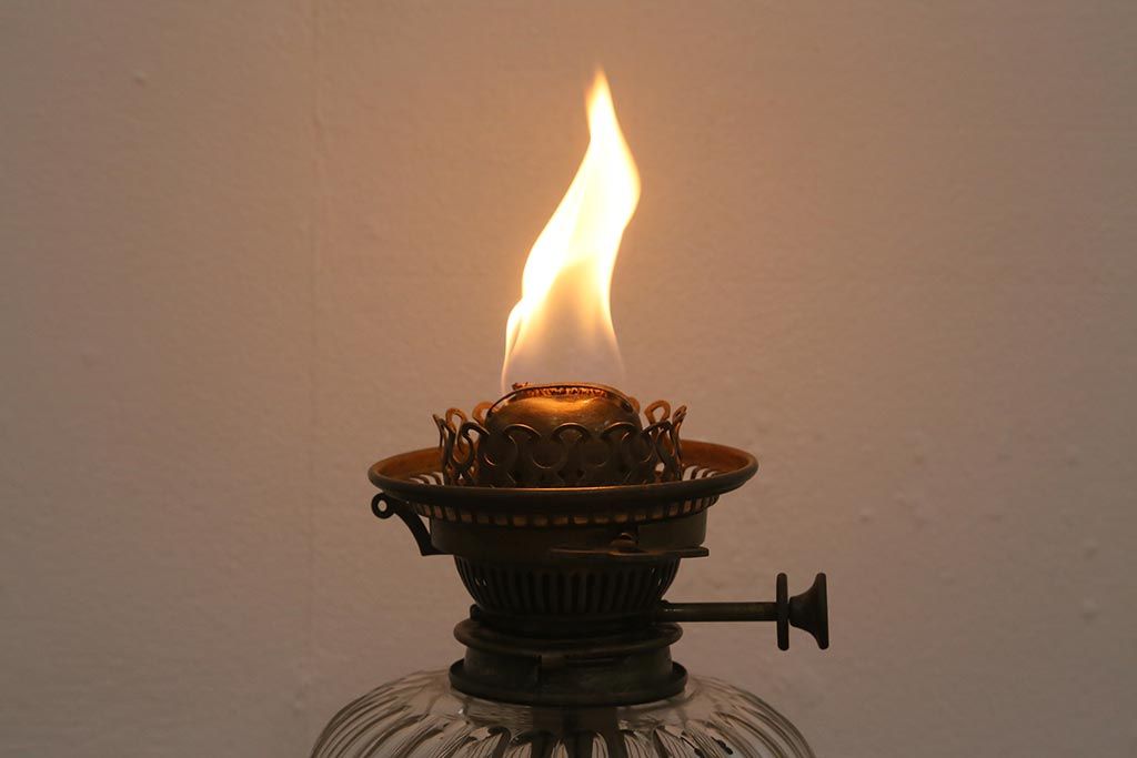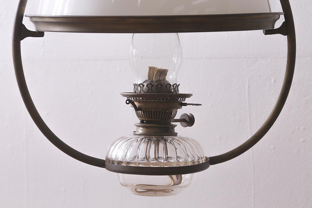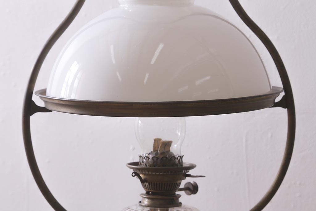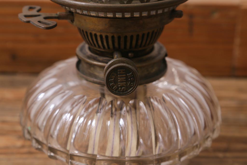 照明・ランプ> ランタン・オイルランプ > ヴィンテージ雑貨 イギリスビンテージ 8分芯 HINKS 1950年 メンズライクにおすすめな銅金具の吊り下げ式オイルランプ(ランタン、ハンギングランプ)(R-039932)