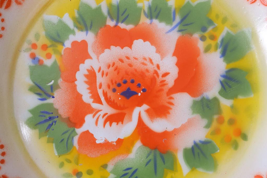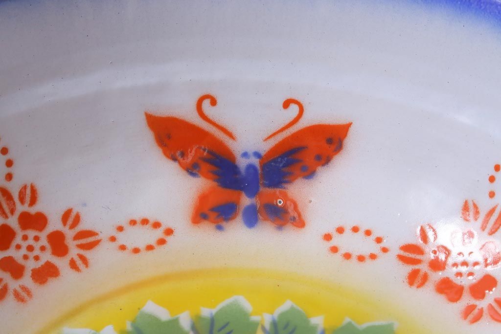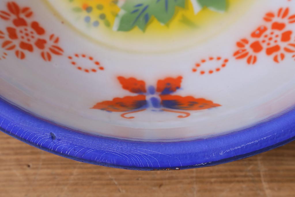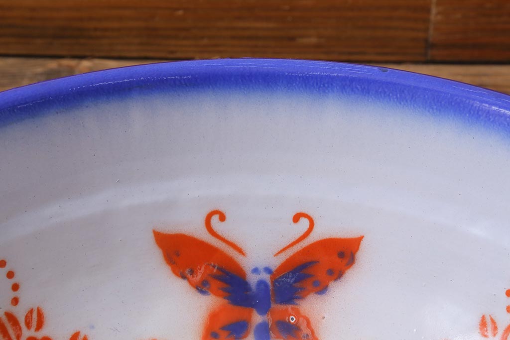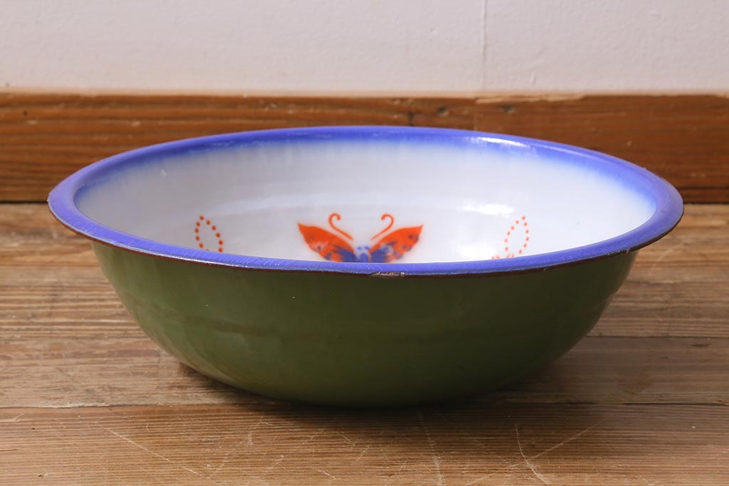 レトロ雑貨 月星印 かわいらしい中国ホーローのようなカラフルな洗面器(琺瑯)(R-039971)