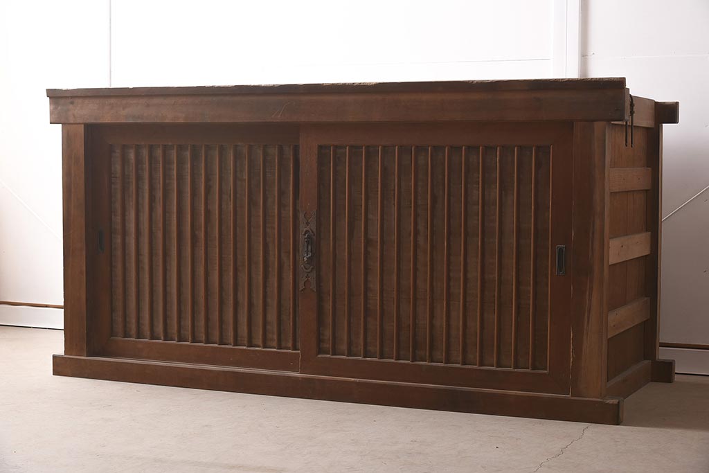 アンティーク家具 和製アンティーク 和モダンな縦桟引き戸の水屋箪笥サイドボード(収納棚、戸棚)(R-037283)
