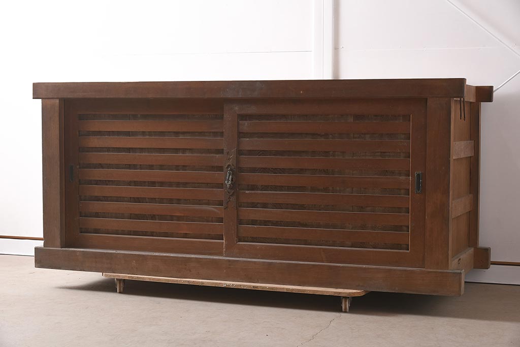 アンティーク家具 和製アンティーク 和モダンな横桟引き戸の水屋箪笥サイドボード(収納棚、戸棚)(R-037284)