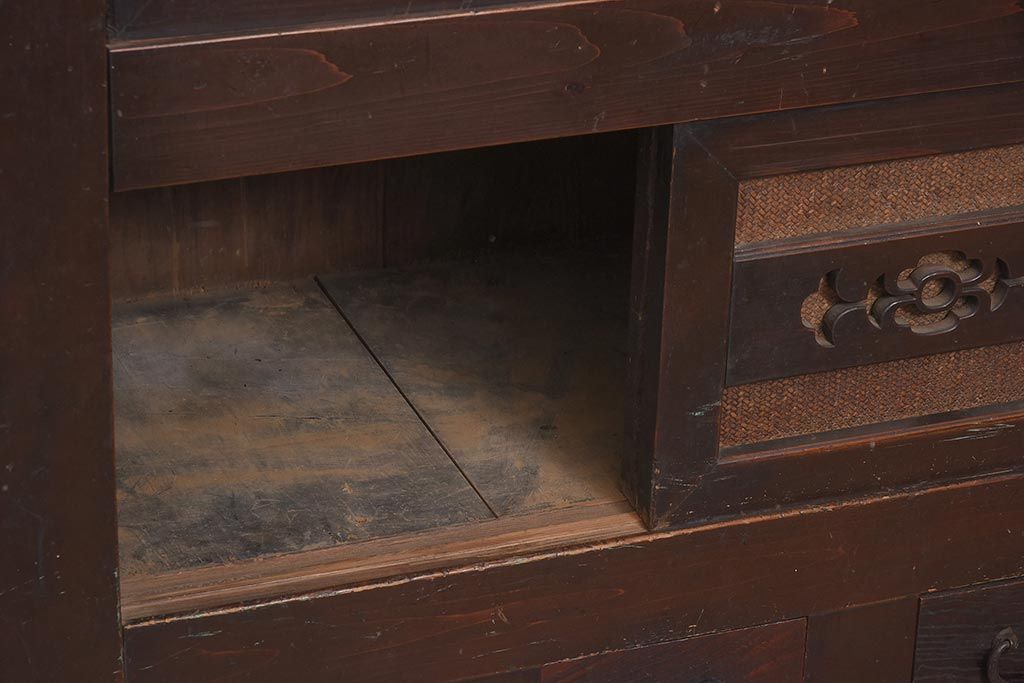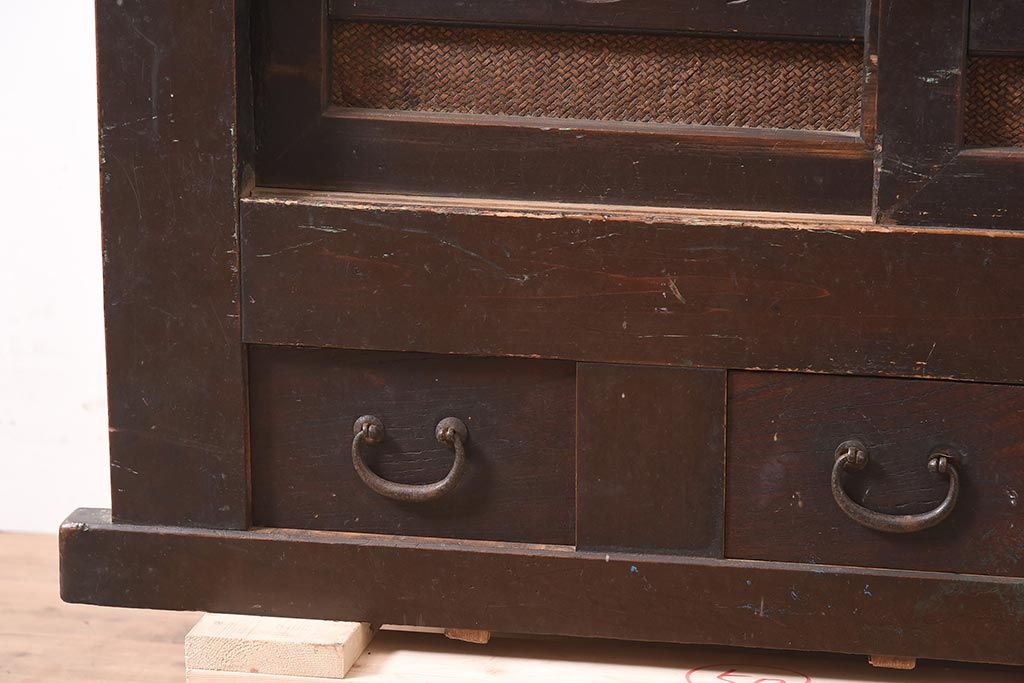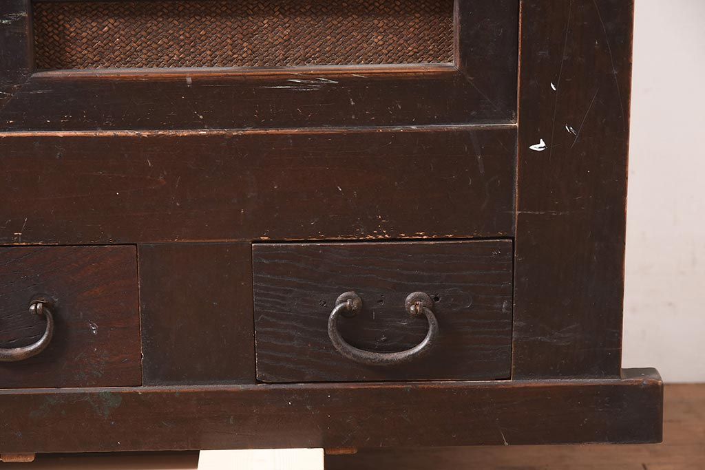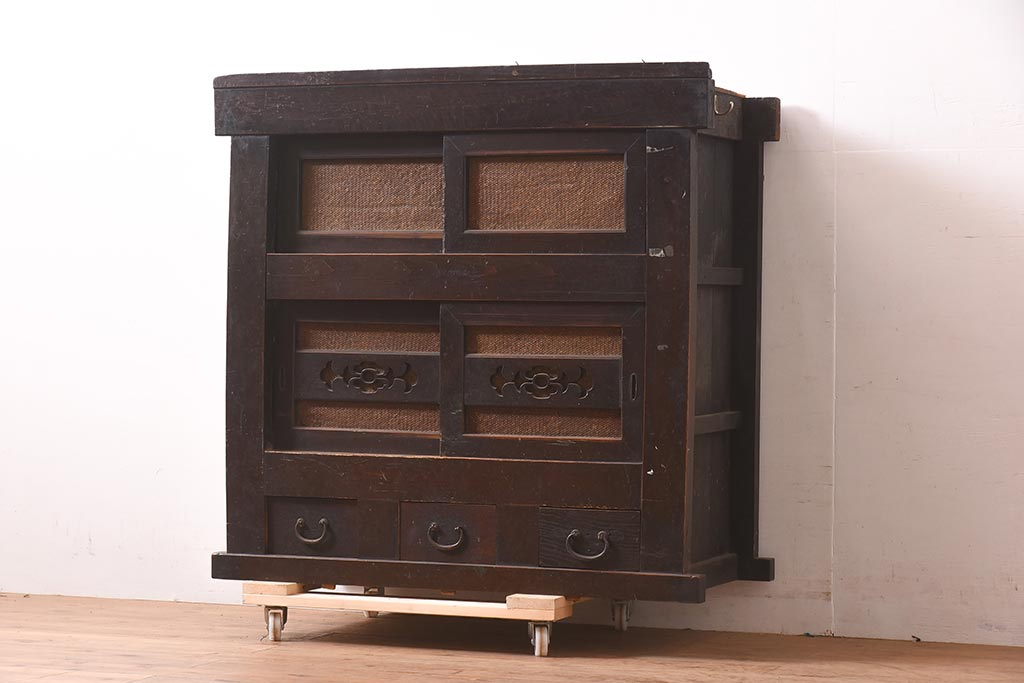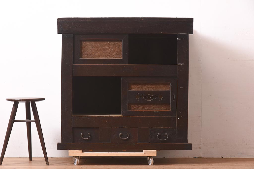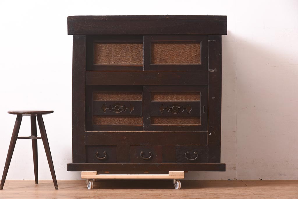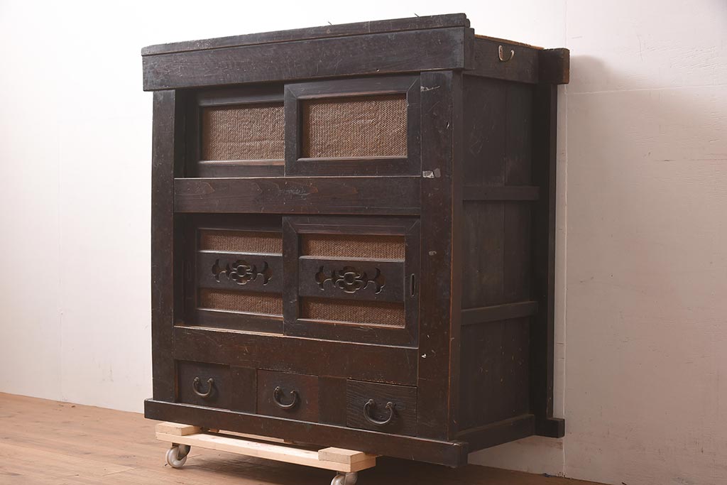 和箪笥> 水屋箪笥 > アンティーク家具 和製アンティーク 明治期 透かし彫りの意匠が入った三尺水屋箪笥(収納棚、キャビネット)(R-037280)