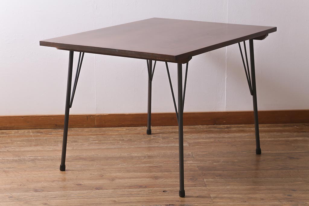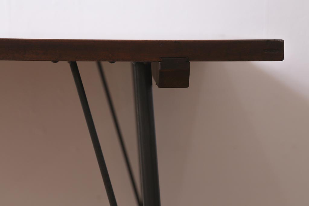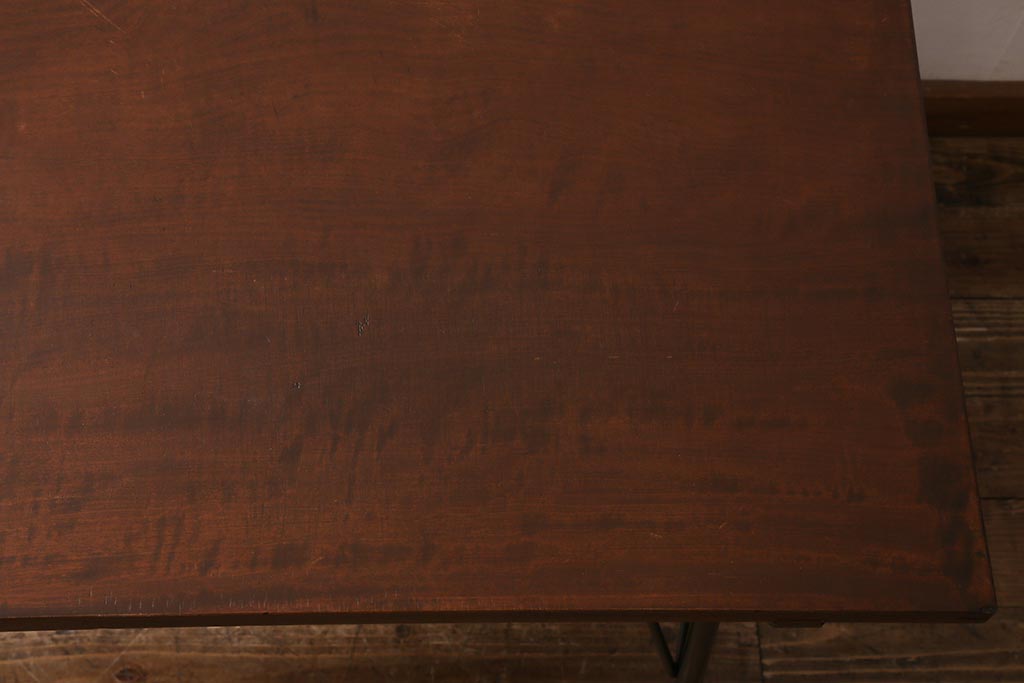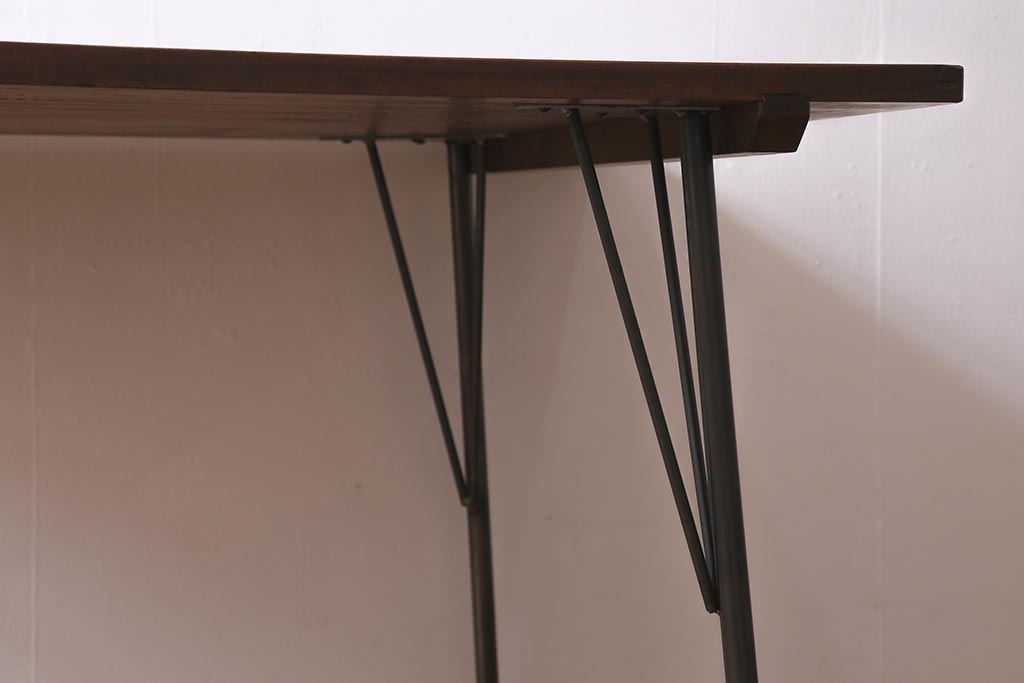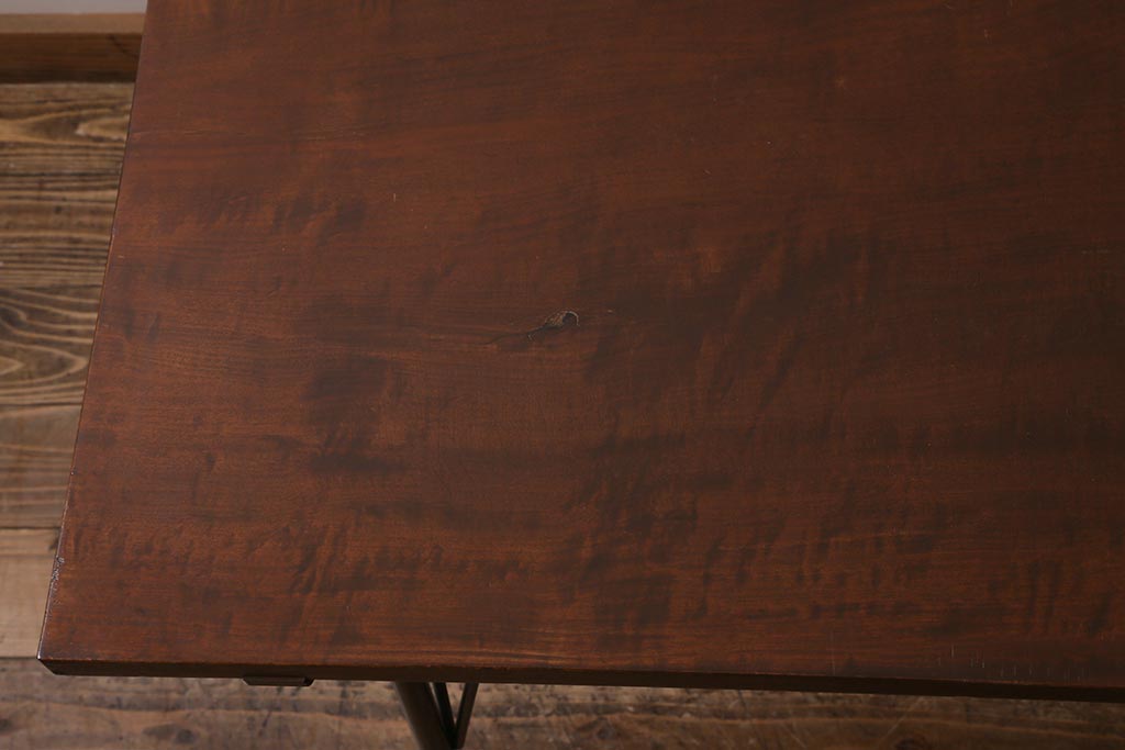 アンティーク家具 リメイク 栃の木一枚板 古材を活かした鉄脚テーブル(ダイニングテーブル、カフェテーブル、作業台)(R-039975)