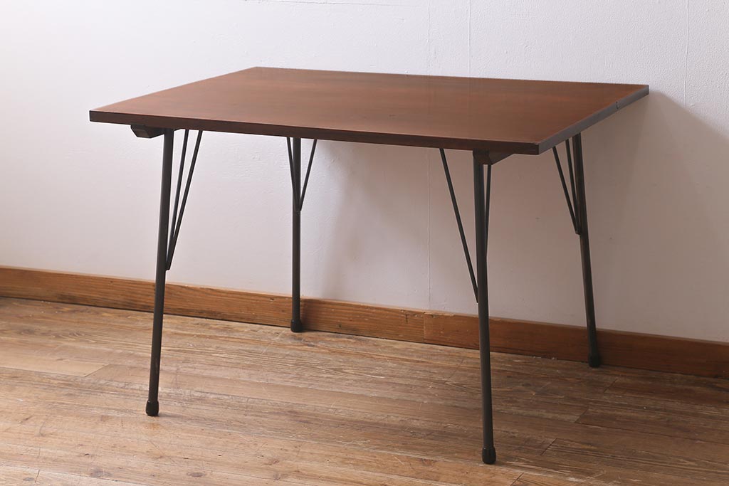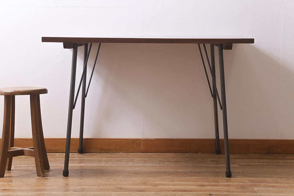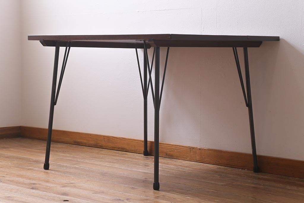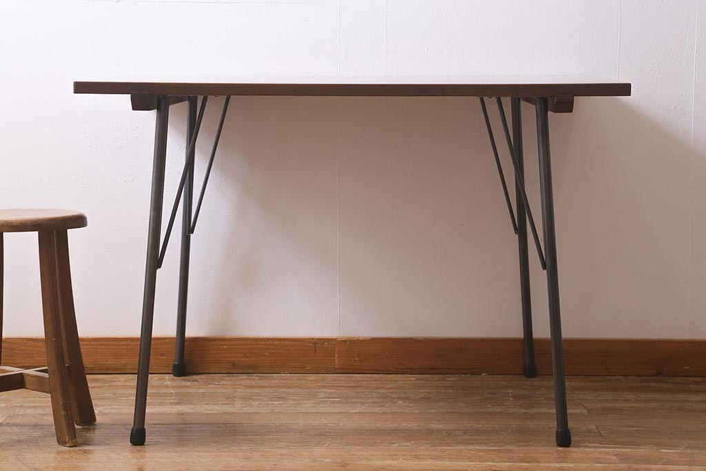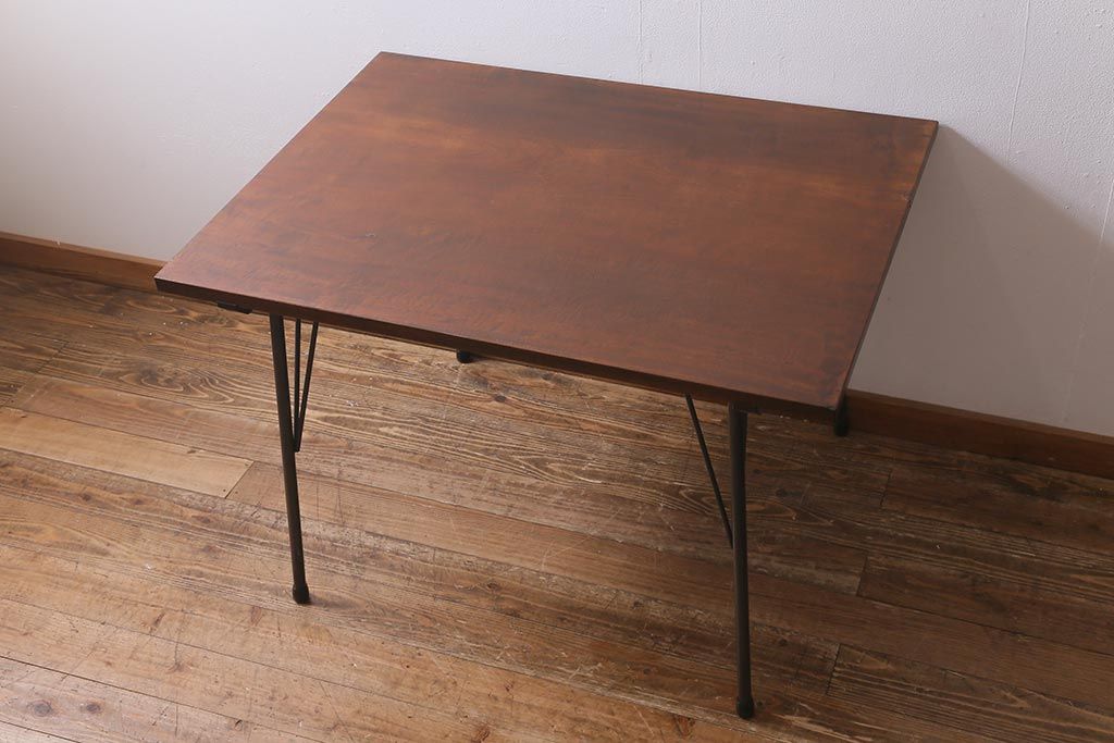 アンティーク家具 リメイク 栃の木一枚板 古材を活かした鉄脚テーブル(ダイニングテーブル、カフェテーブル、作業台)(R-039975)