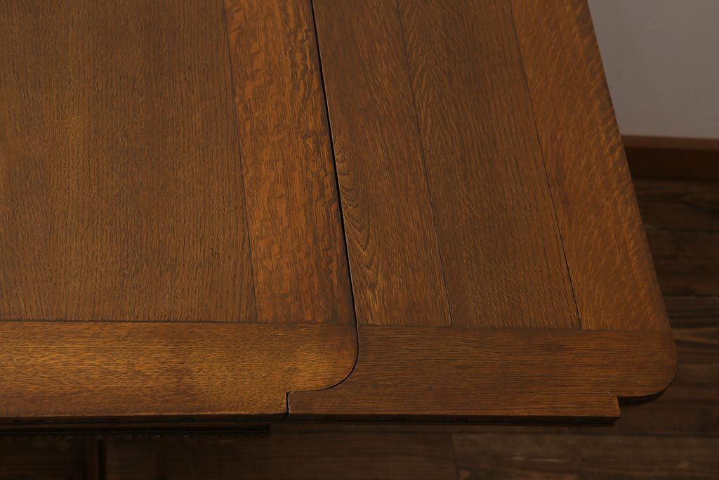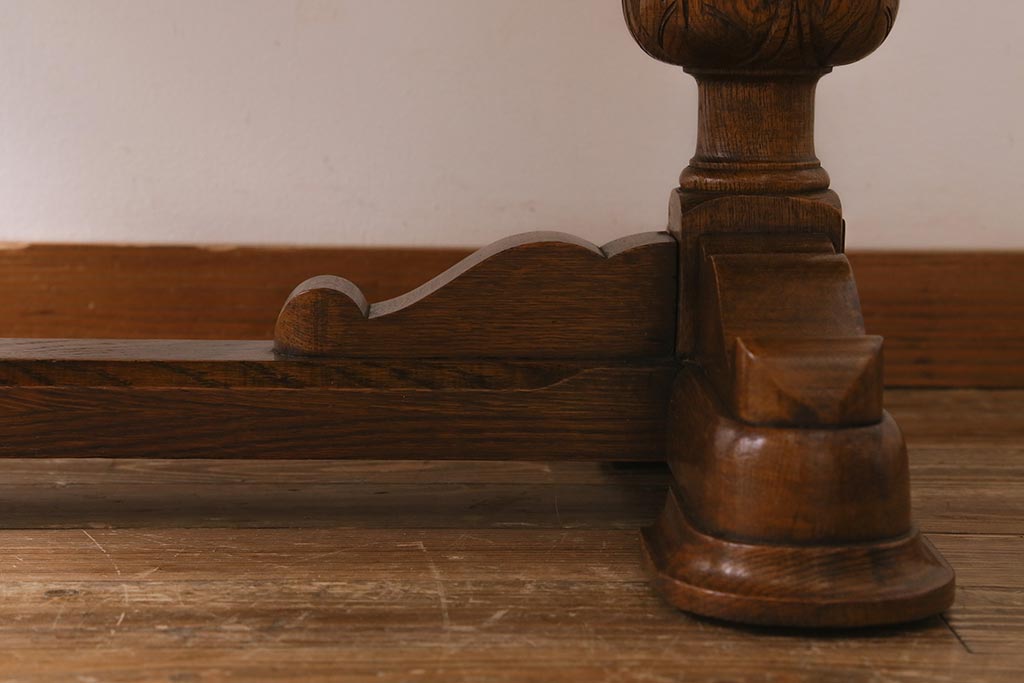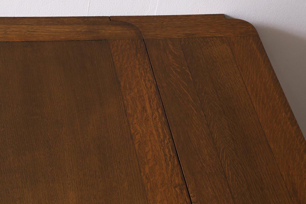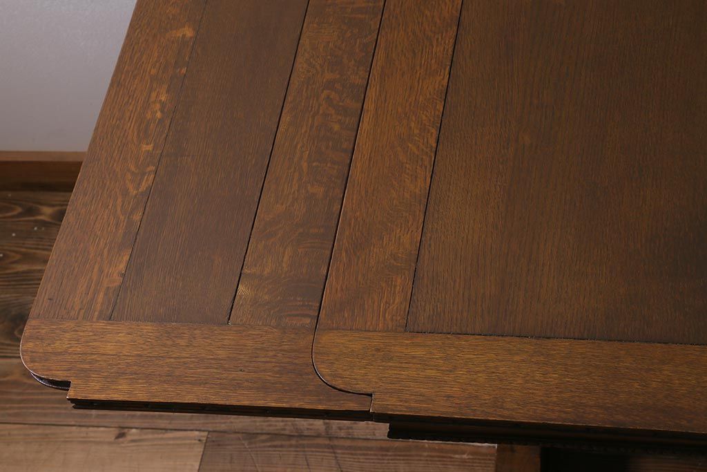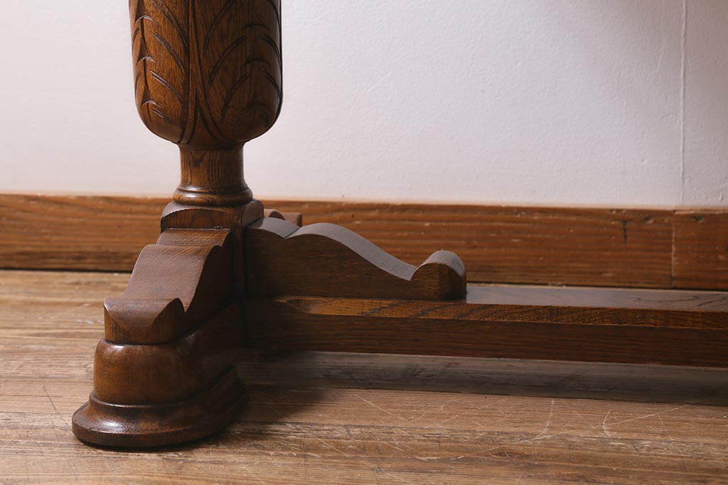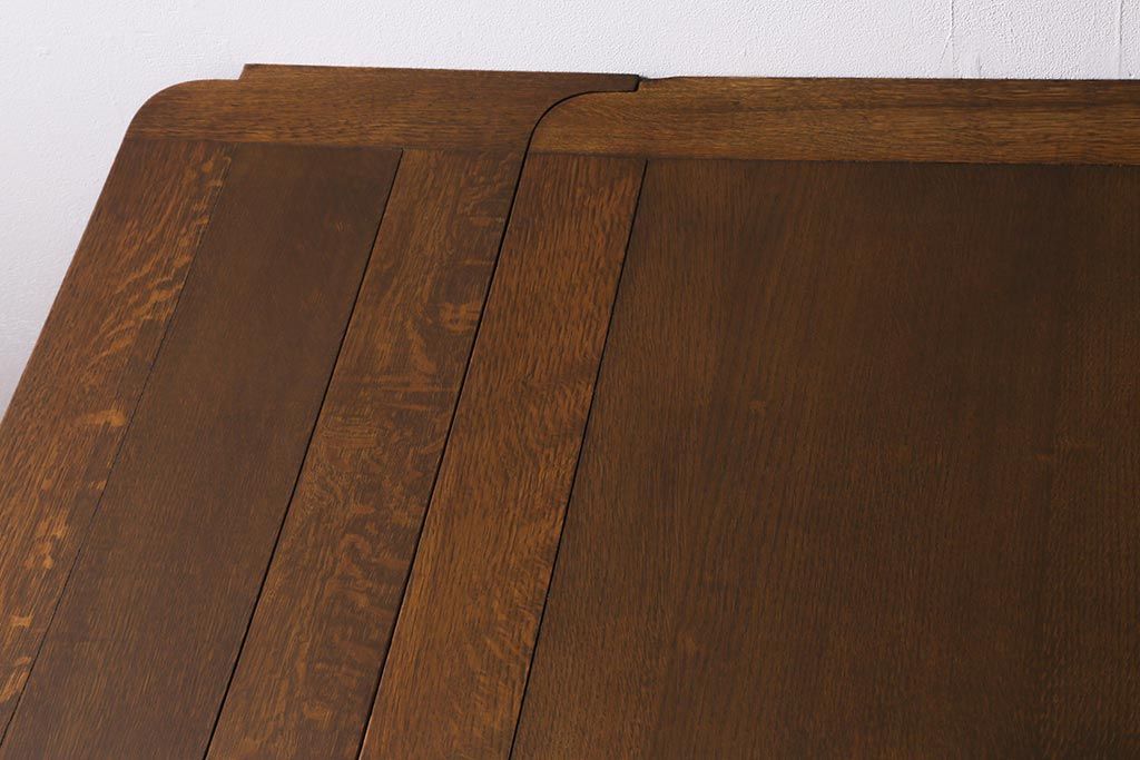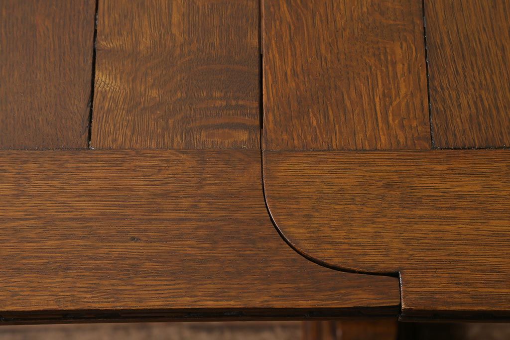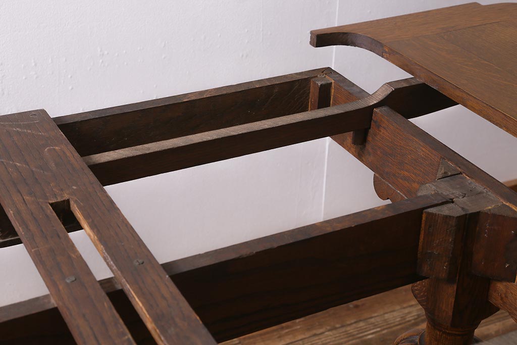 テーブル> エクステンションテーブル > アンティーク家具 イギリスアンティーク オーク材 ブルボーズレッグが目を引くドローリーフテーブル(エクステンションテーブル、ダイニングテーブル)(R-039960)