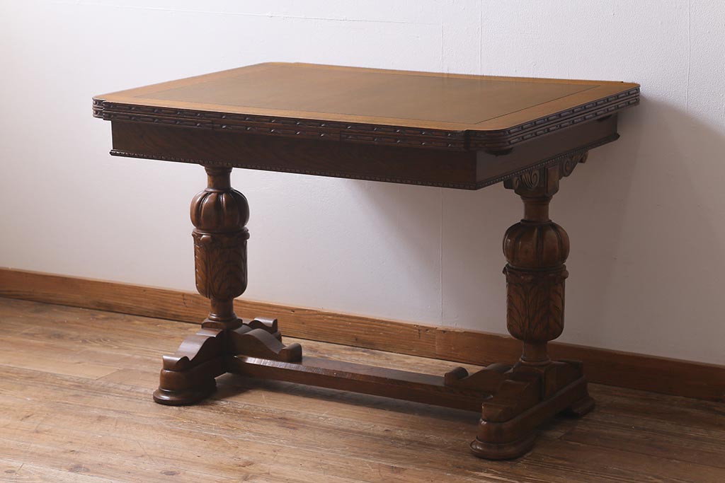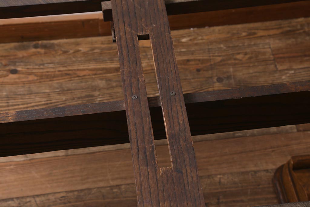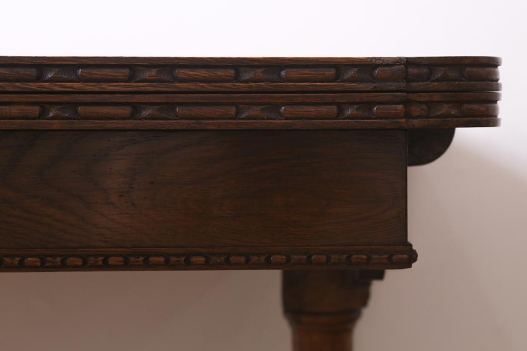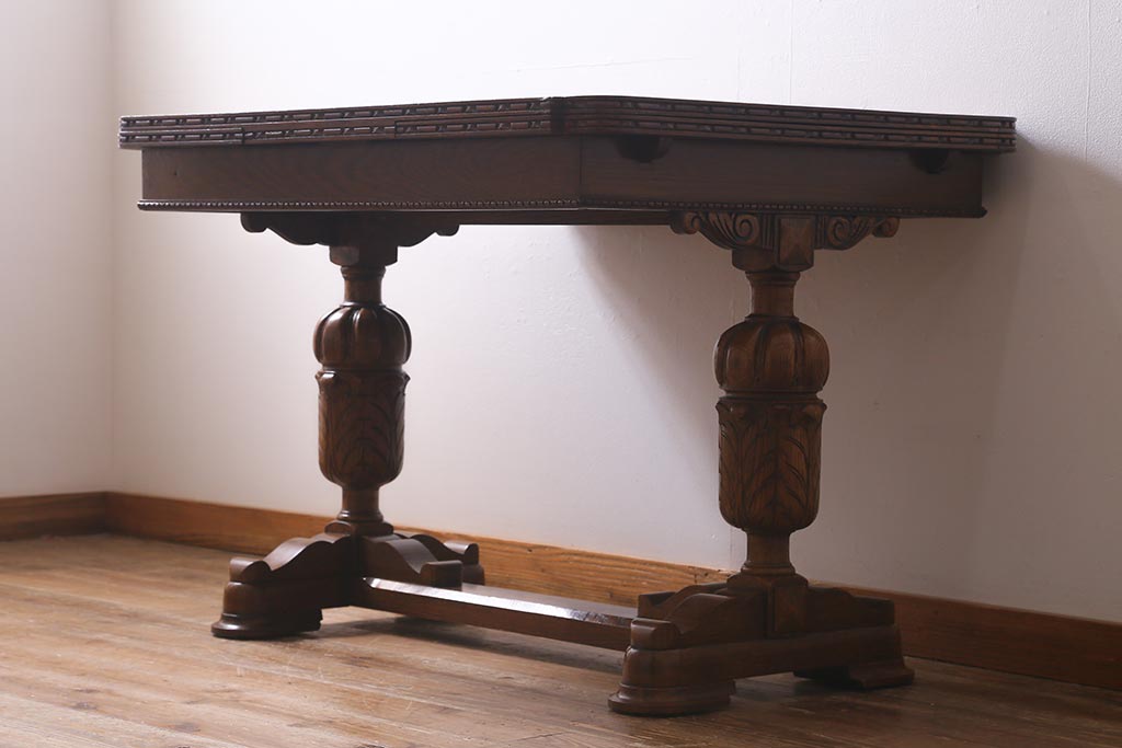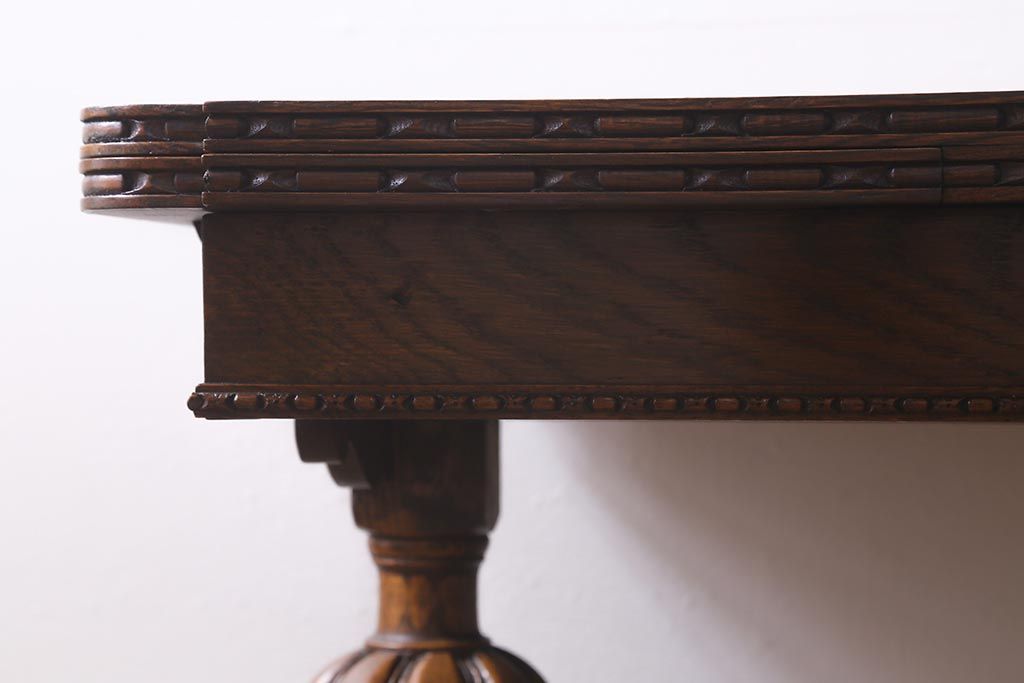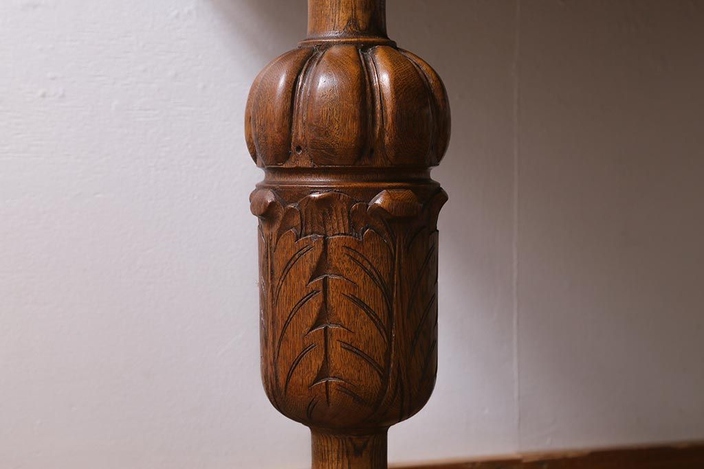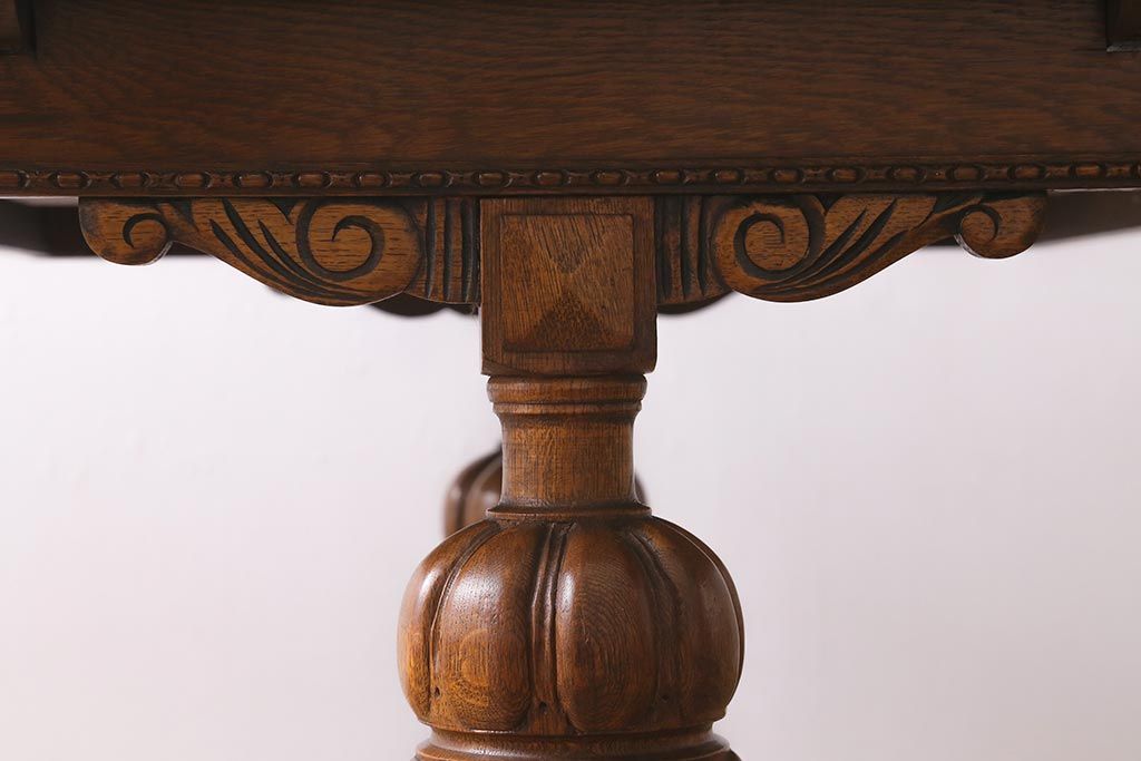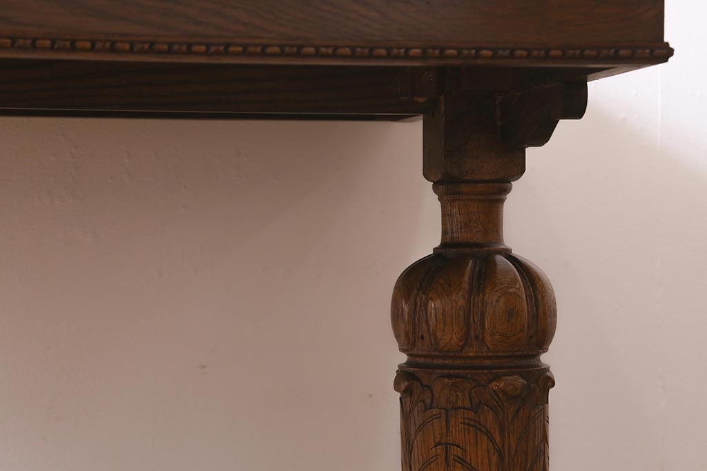 テーブル> エクステンションテーブル > アンティーク家具 イギリスアンティーク オーク材 ブルボーズレッグが目を引くドローリーフテーブル(エクステンションテーブル、ダイニングテーブル)(R-039960)