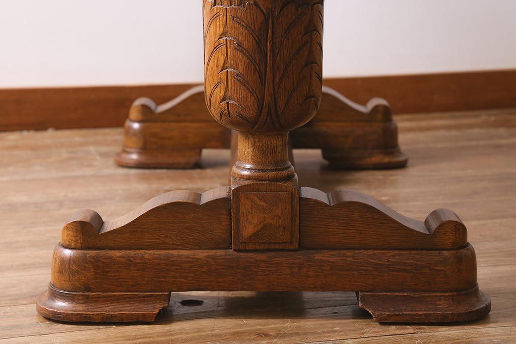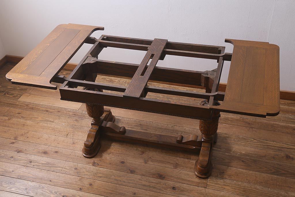 アンティーク家具 イギリスアンティーク オーク材 ブルボーズレッグが目を引くドローリーフテーブル(エクステンションテーブル、ダイニングテーブル)(R-039960)